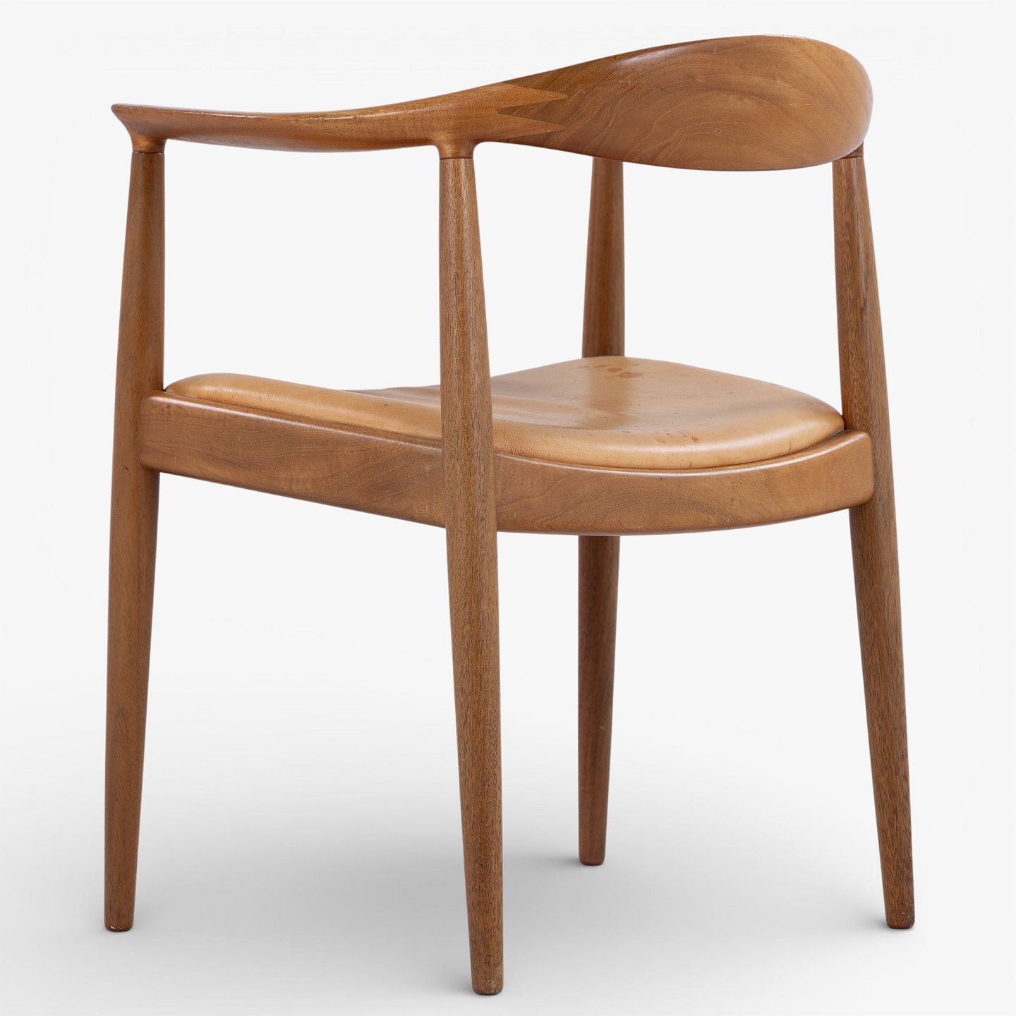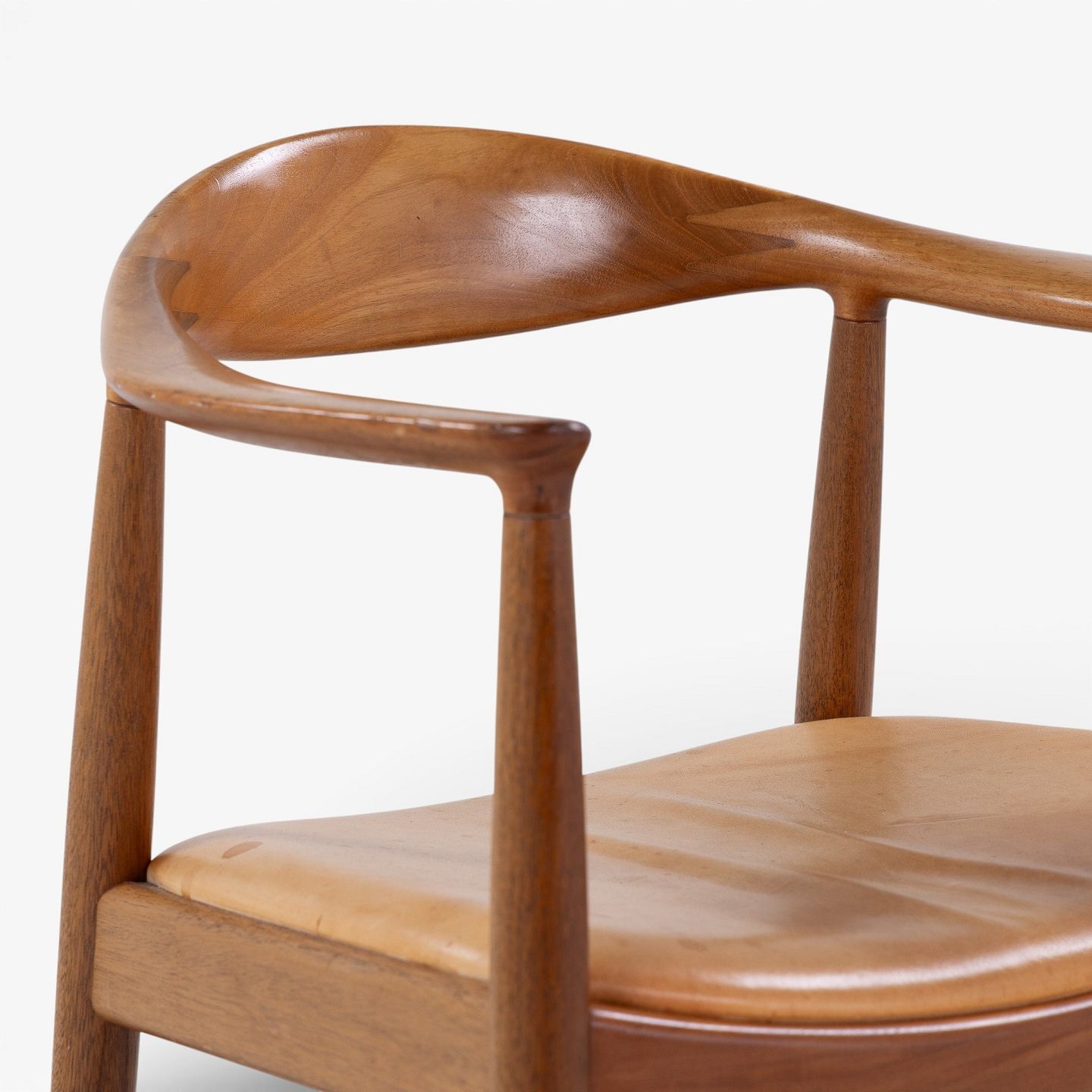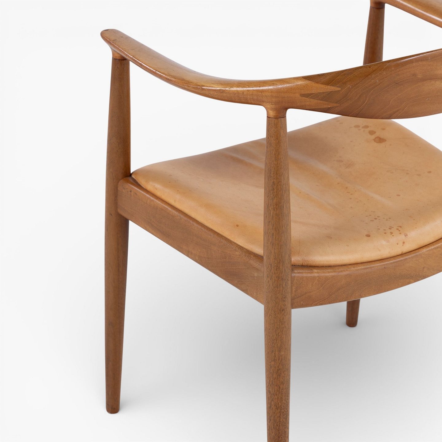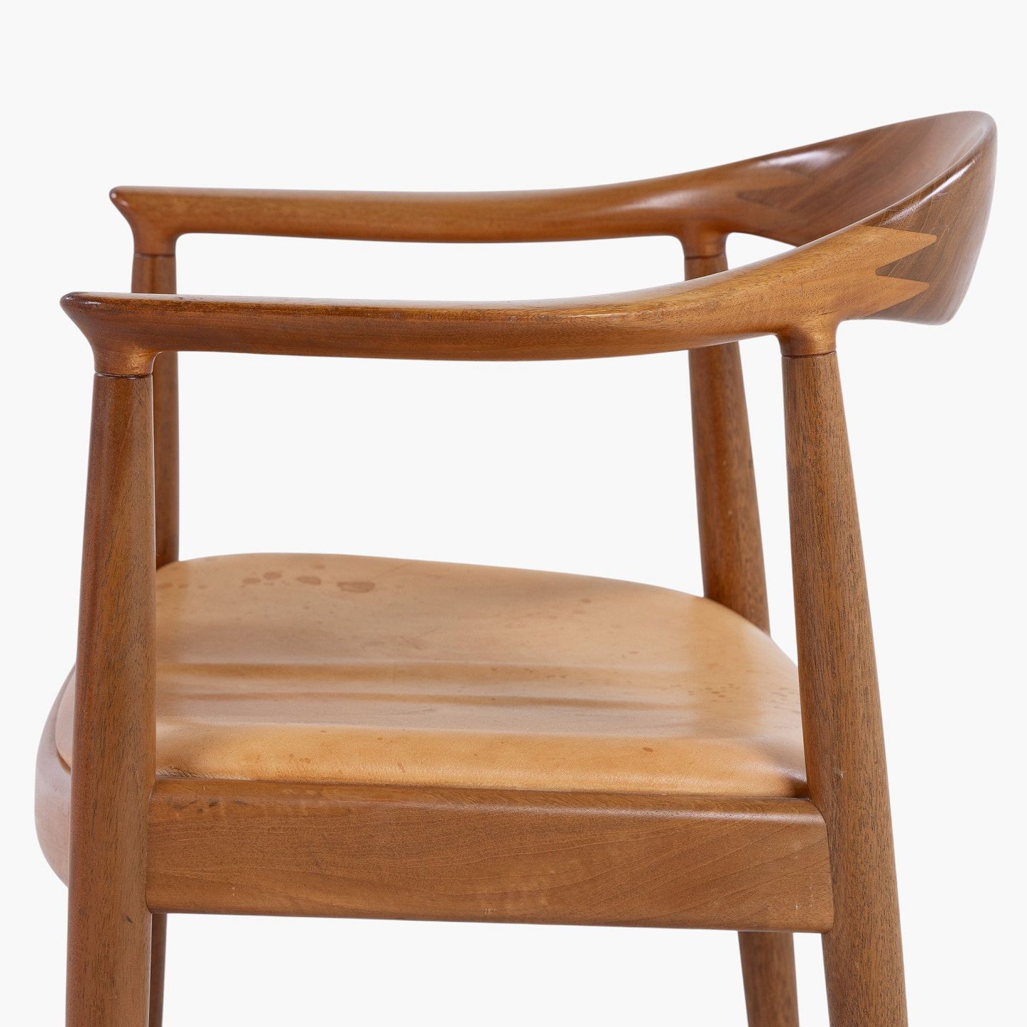JH 503 - 'The Chair'-armstol i mahogni med sæde i patineret naturlæder. Mærket fra producent.