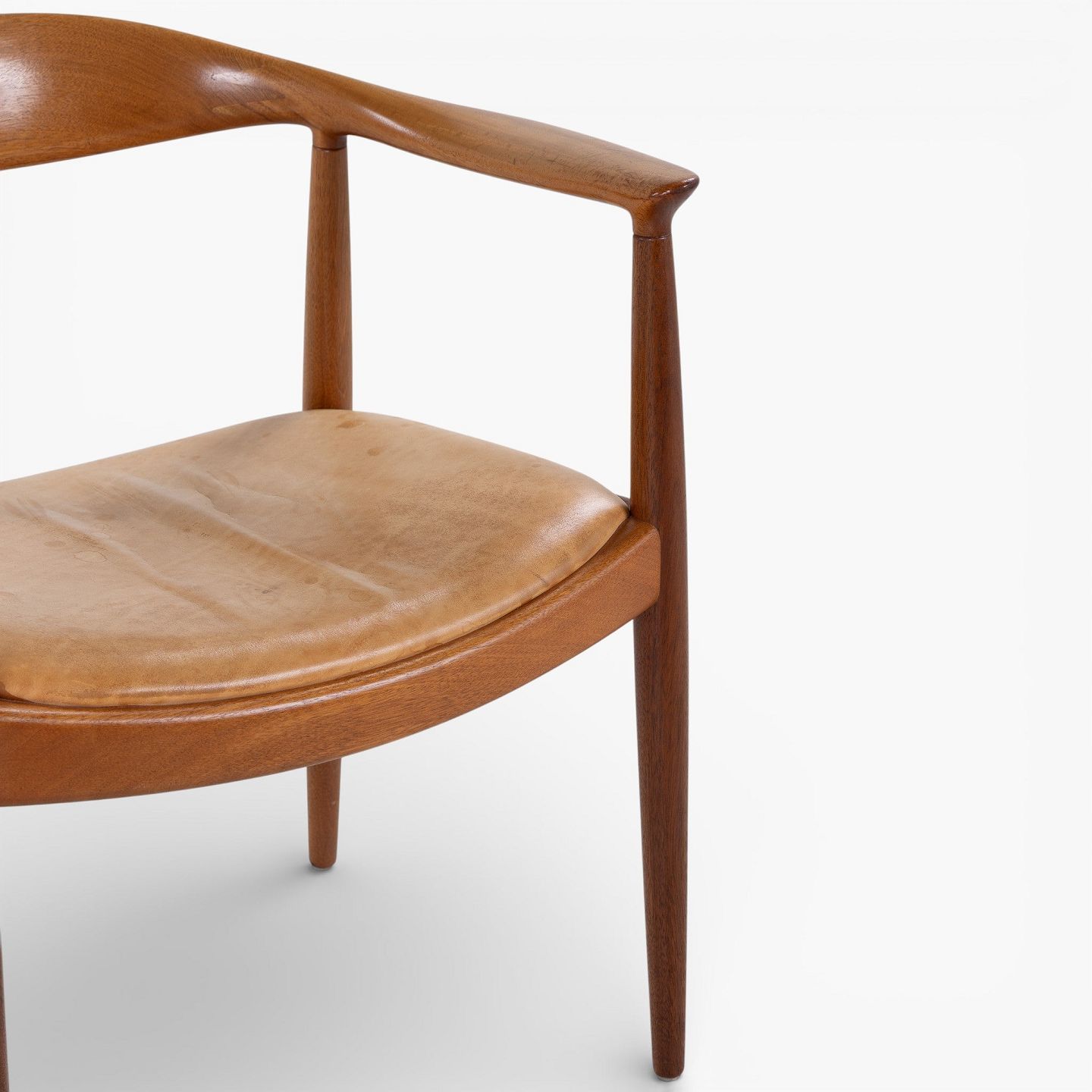 JH 503 - 'The Chair'-armstol i mahogni med sæde i patineret naturlæder. Mærket fra producent.