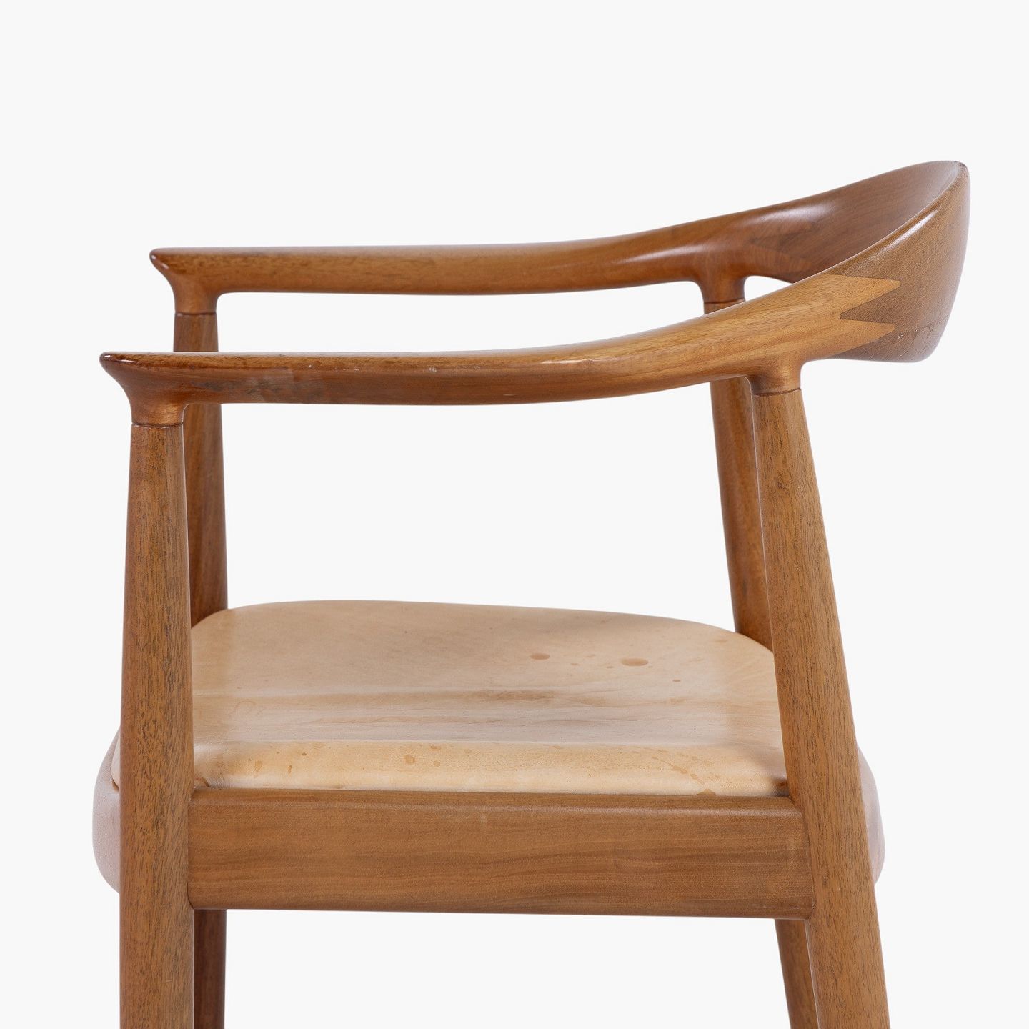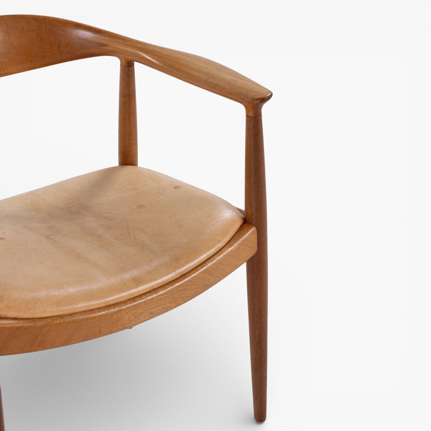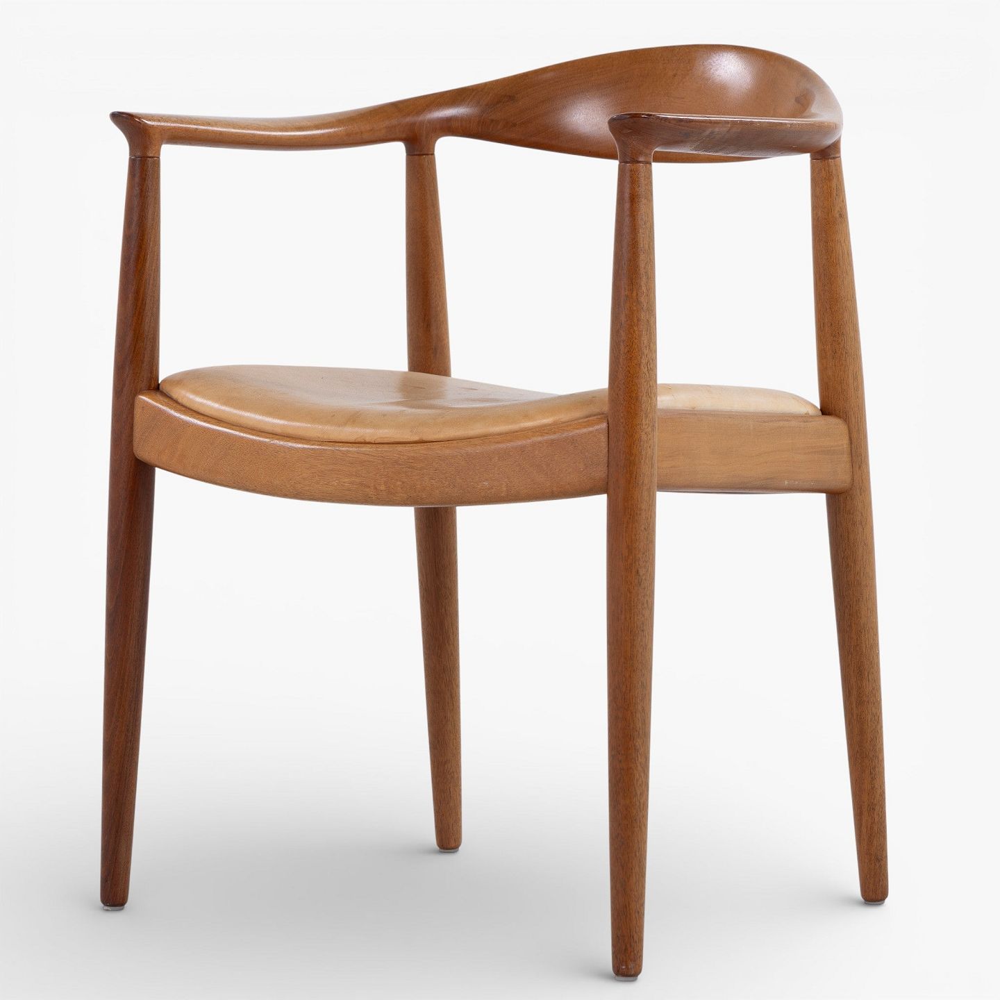 JH 503 - 'The Chair'-armstol i mahogni med sæde i patineret naturlæder. Mærket fra producent.