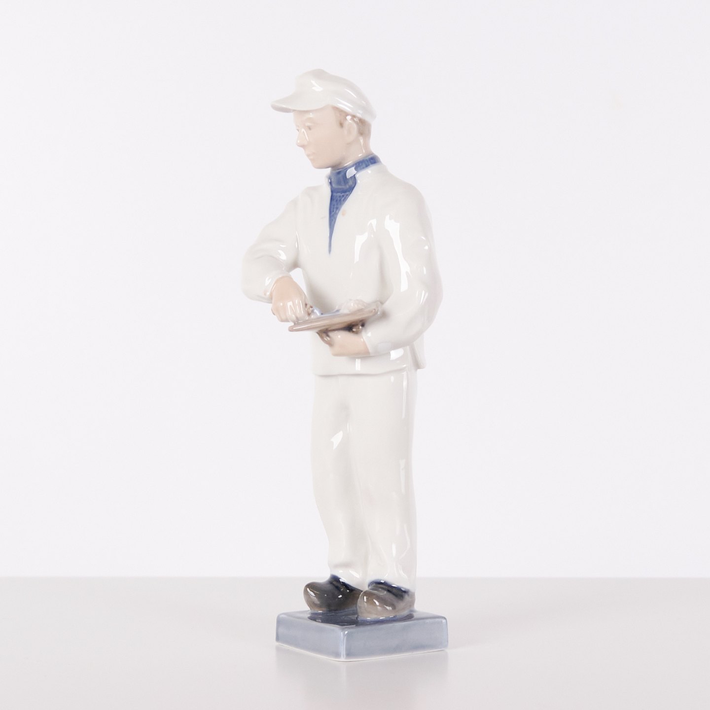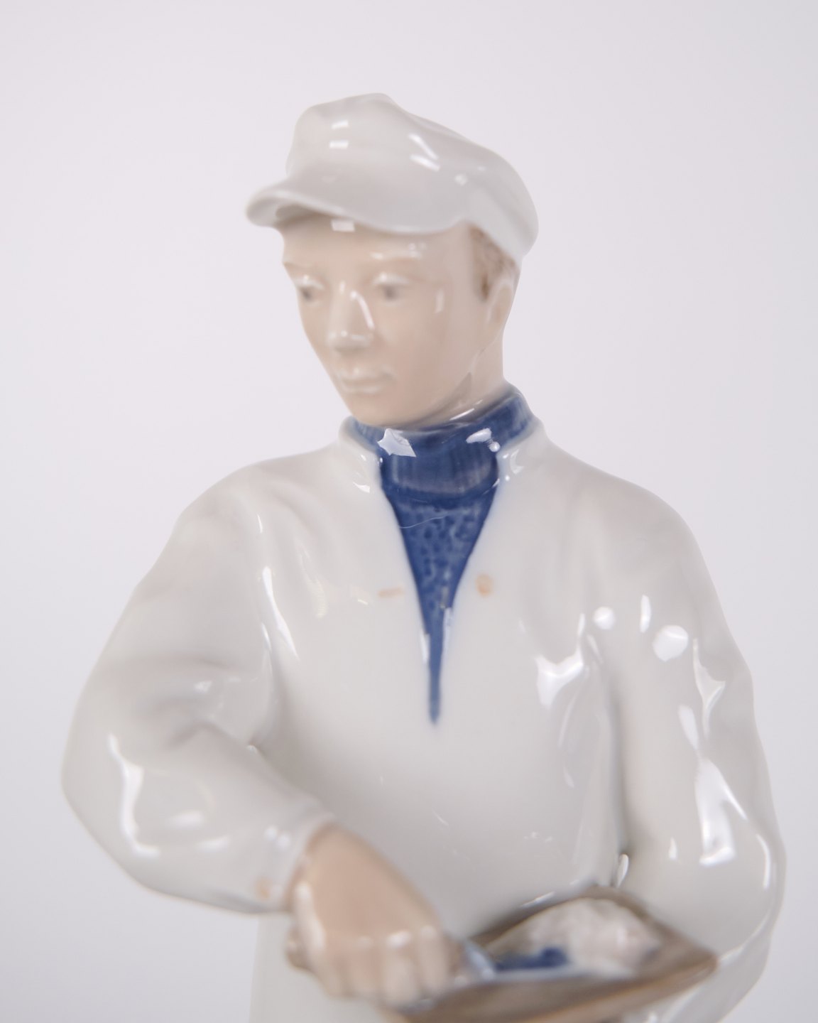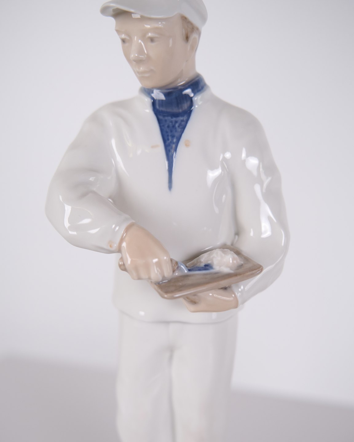 Kongelig murerfigur, model 4377, designet af Johannes Hedegaard for Royal Copenhagen. Figuren forestiller en murer i arbejdsdragt og er udført som en del af Royal Copenhagens figurproduktion. Modellen er kendt for sit håndværksmæssige udtryk og indgår i dansk figurkeramik fra det 20. århundrede.— Designer: Johannes Hedegaard