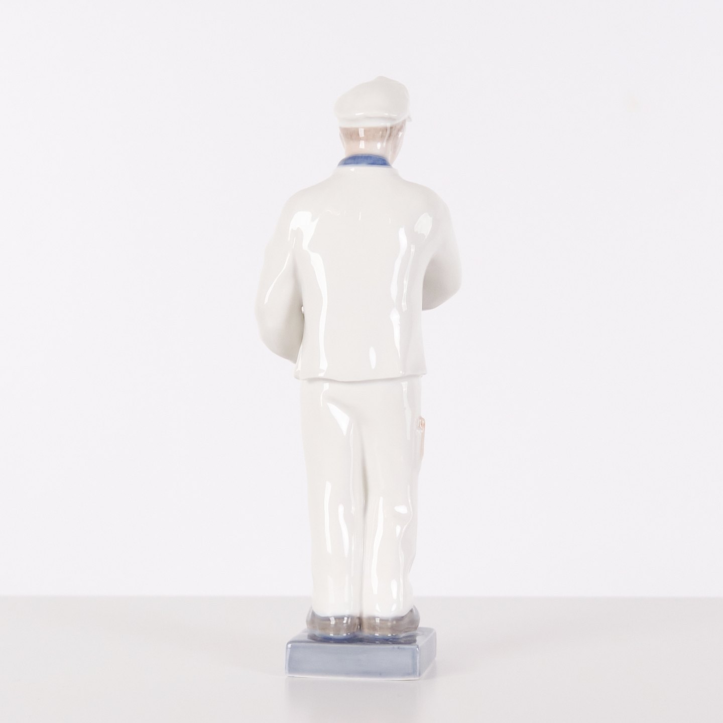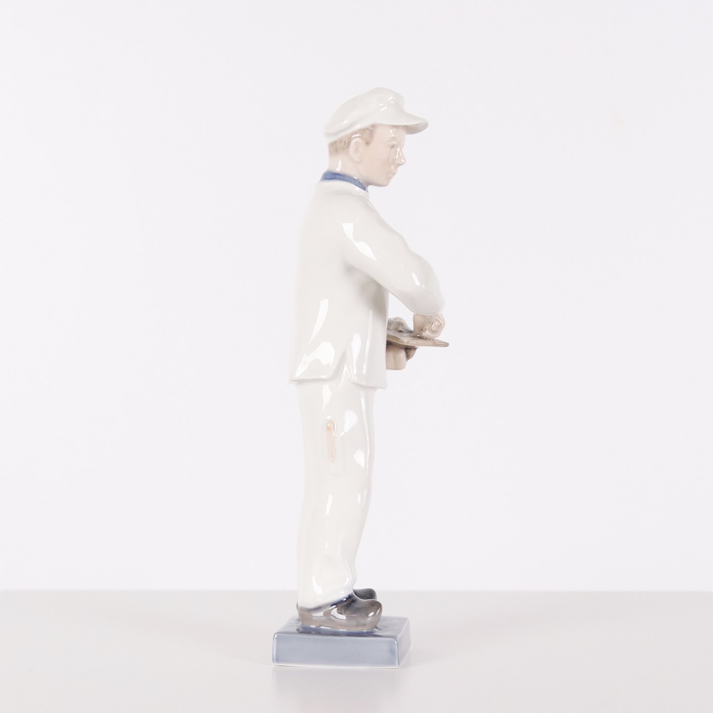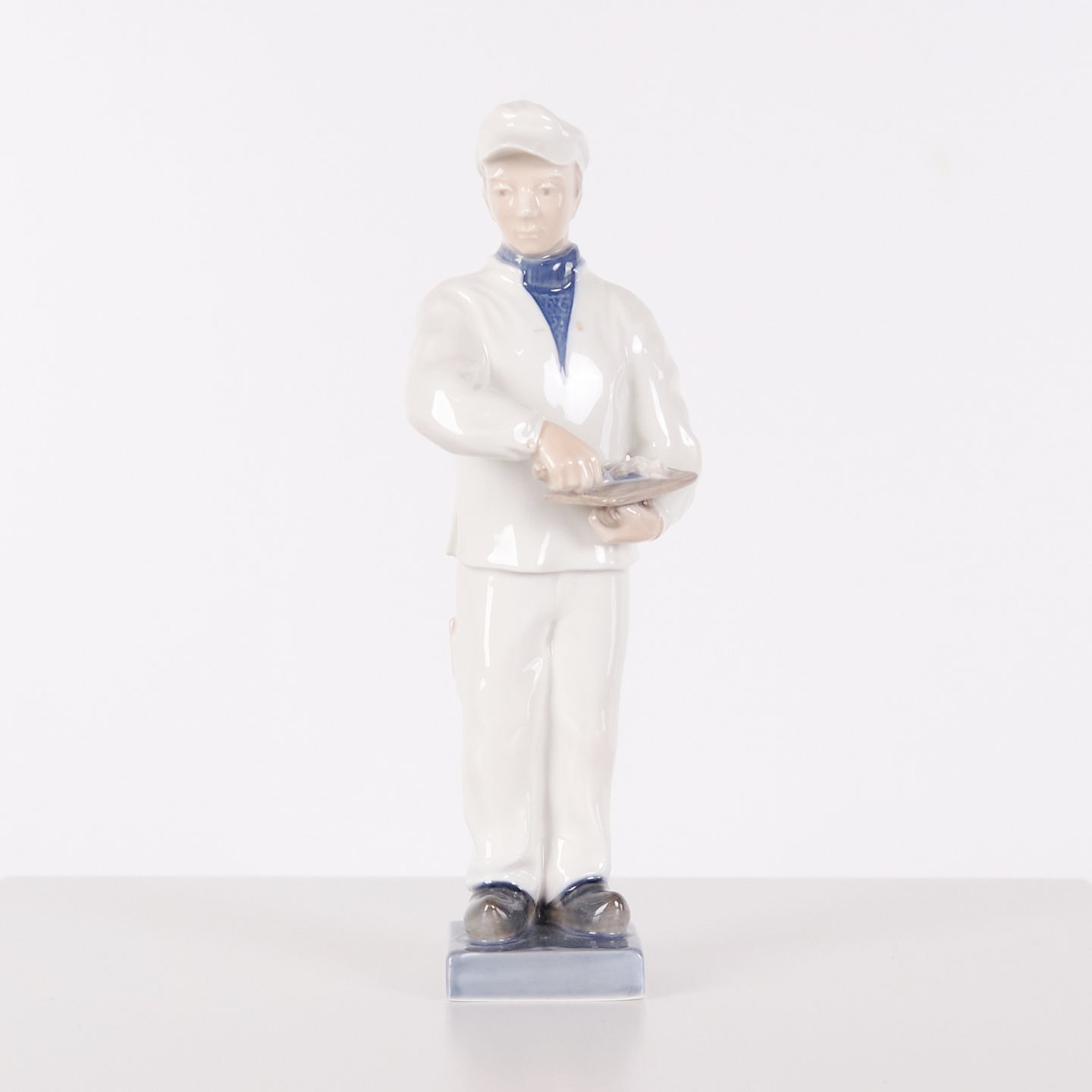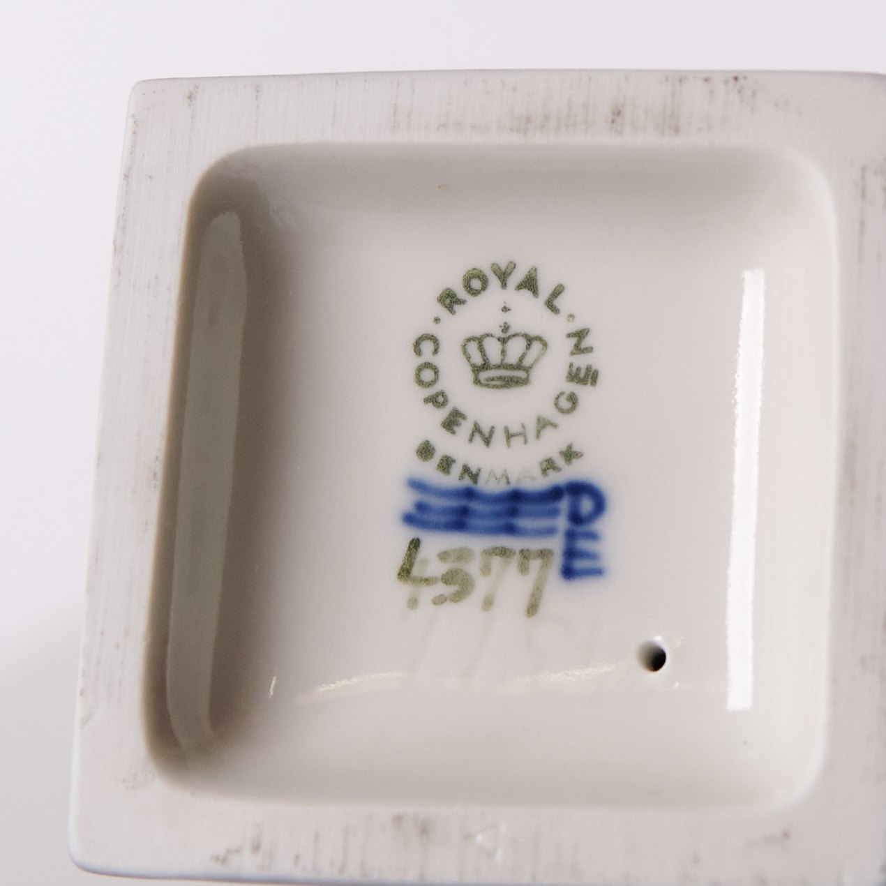 Kongelig murerfigur, model 4377, designet af Johannes Hedegaard for Royal Copenhagen. Figuren forestiller en murer i arbejdsdragt og er udført som en del af Royal Copenhagens figurproduktion. Modellen er kendt for sit håndværksmæssige udtryk og indgår i dansk figurkeramik fra det 20. århundrede.— Designer: Johannes Hedegaard