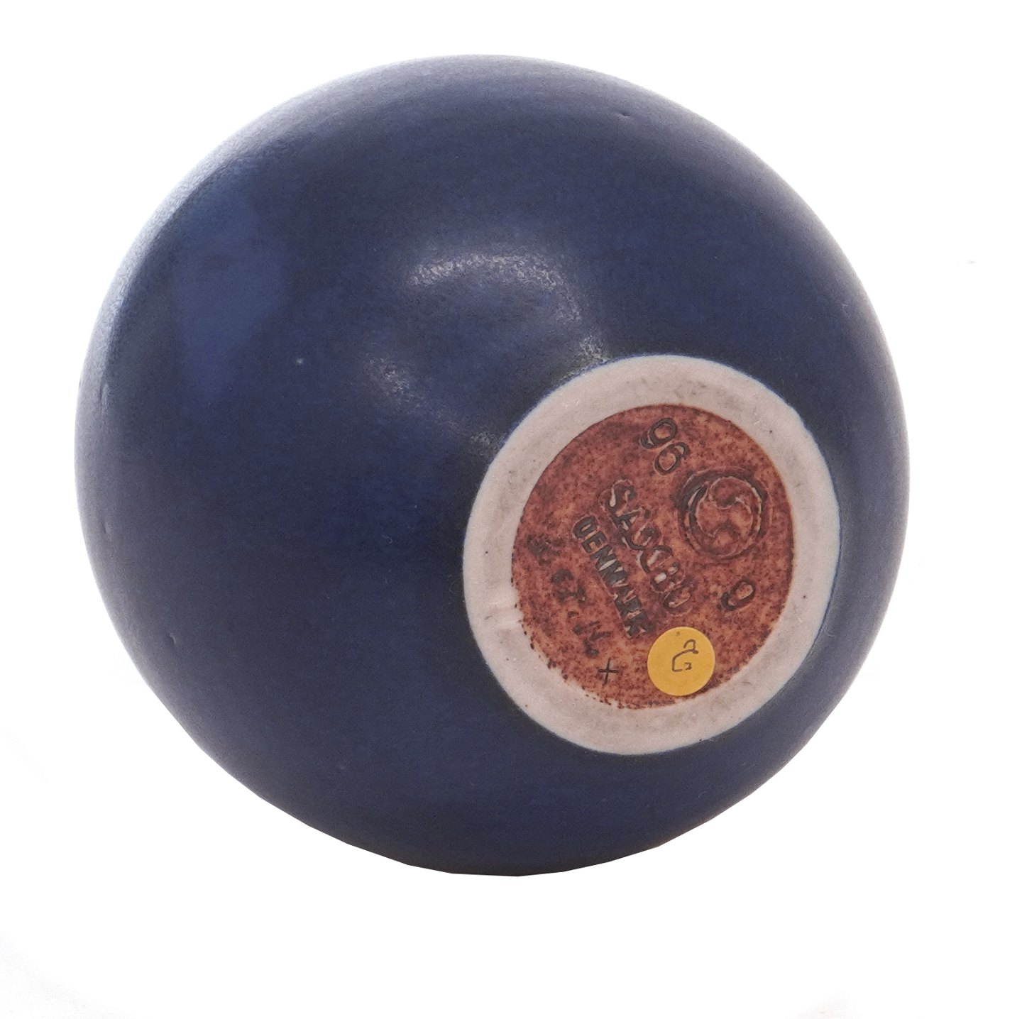 Saxbo stentøjs vase 96 med blå glasur signeret Eva Stæhr NielsenH: 11,5cm