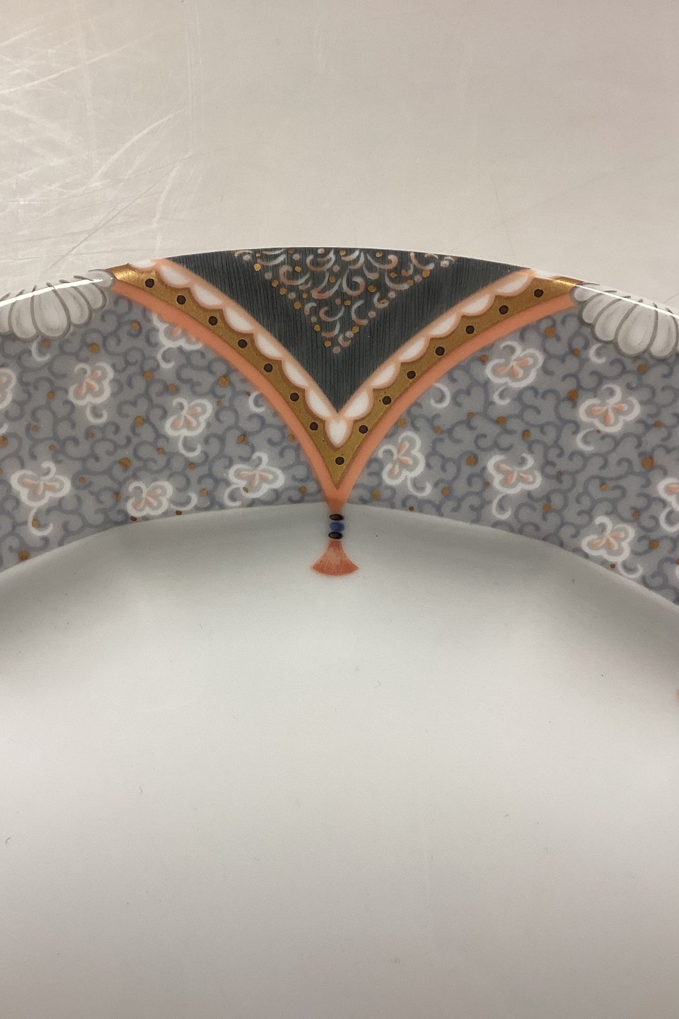 Royal Copenhagen Fairytale Grå, Stort Rundt Fad No. 376. Måler 33 cm / 13 in.Lager: 1