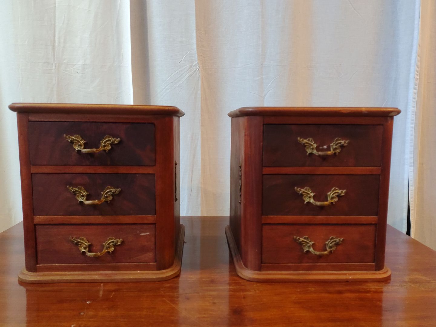 2 Små kommoder i fineret mahogni, fra 1910erne.De har brugsspor.