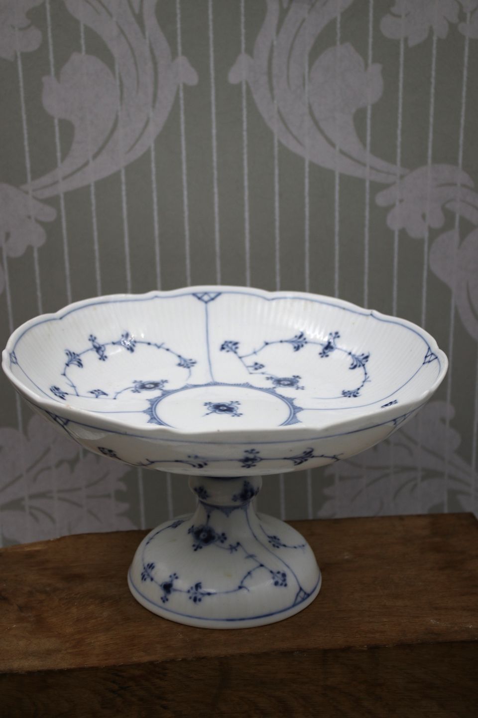 Frugt / kage opsats i Musselmalet Riflet fra Royal Copenhagen.Dekorationsnummer: 1/458. 1.sort. H: 14cm. Dia.: 23cm.