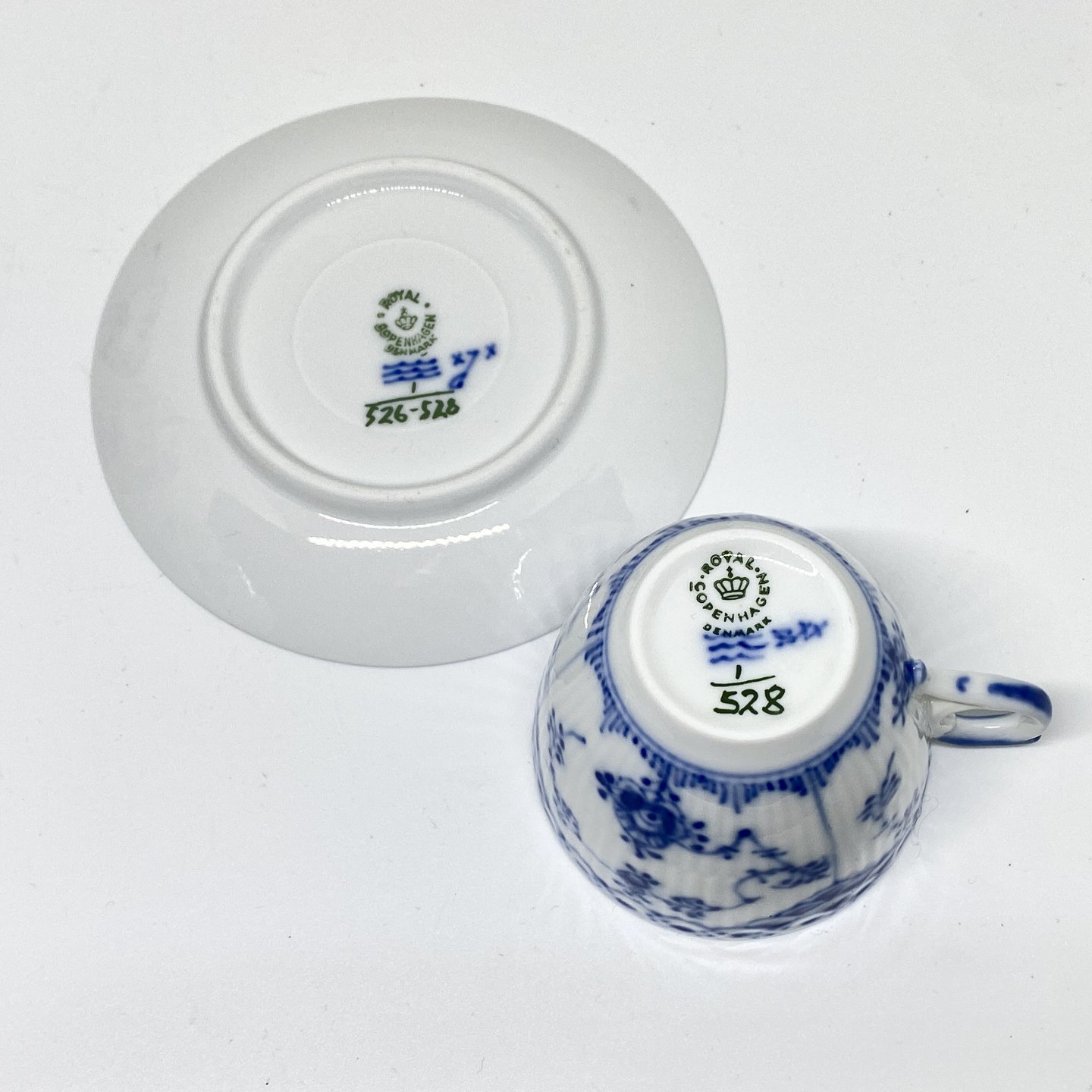 Royal Copenhagen/Kgl Musselmalet halvblonde kaffekop og underkop.Dekorations nummer kop