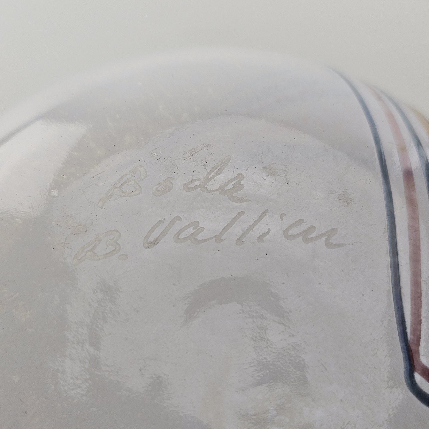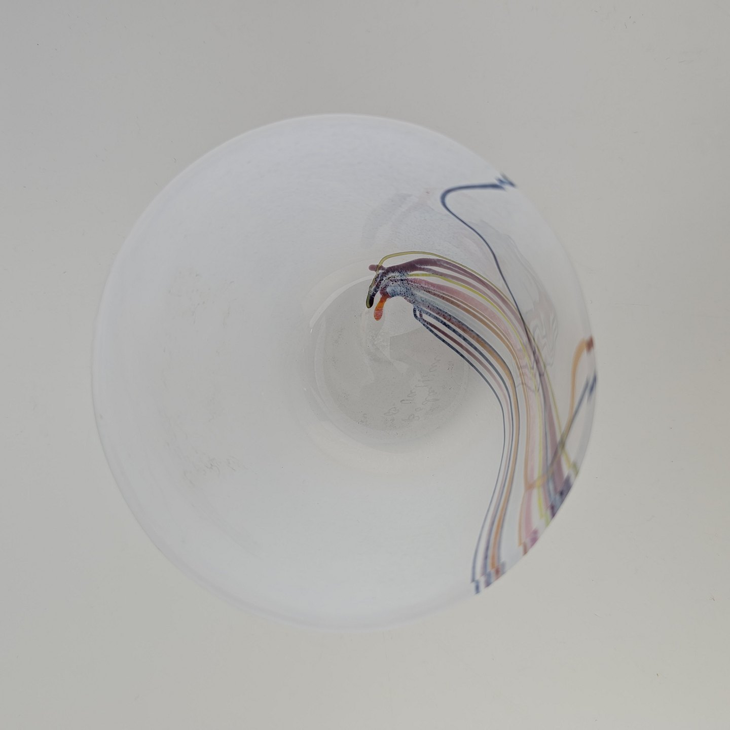 Skål i glas med abstrakt dekoration i flere farverFormgiver Bertil Vallien (1938)
