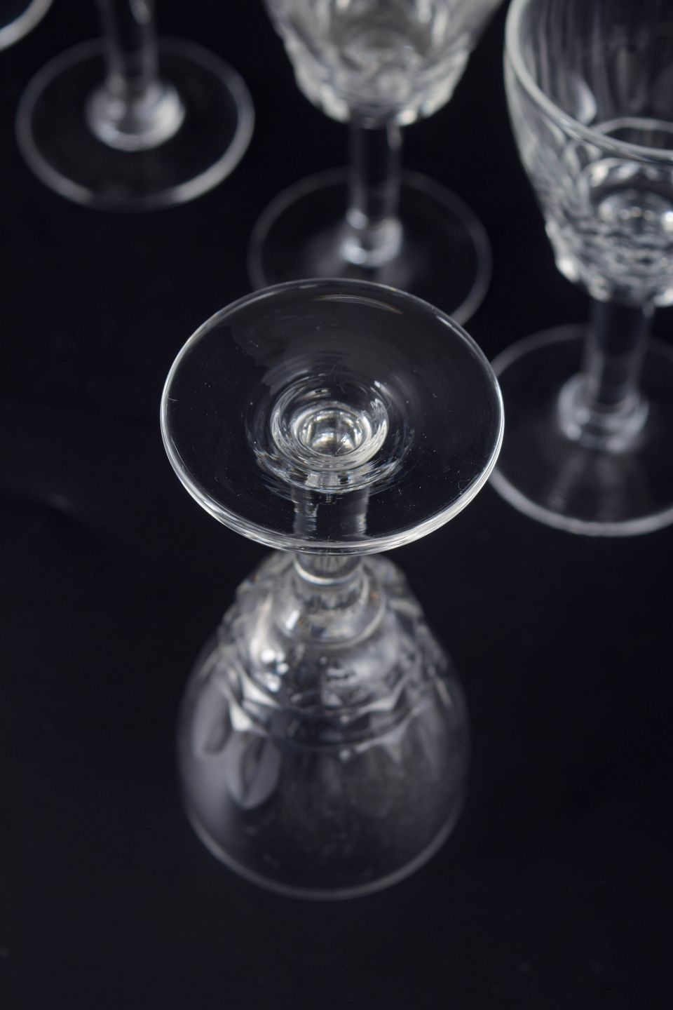 Mid-20th-century French crystal glassware is often defined by precise cutting and well-balanced proportions, using facets and flat planes to emphasise clarity and sparkle. Small schnapps glasses were a staple of formal table settings and home bars, and remain highly collectible today for their timeless elegance.