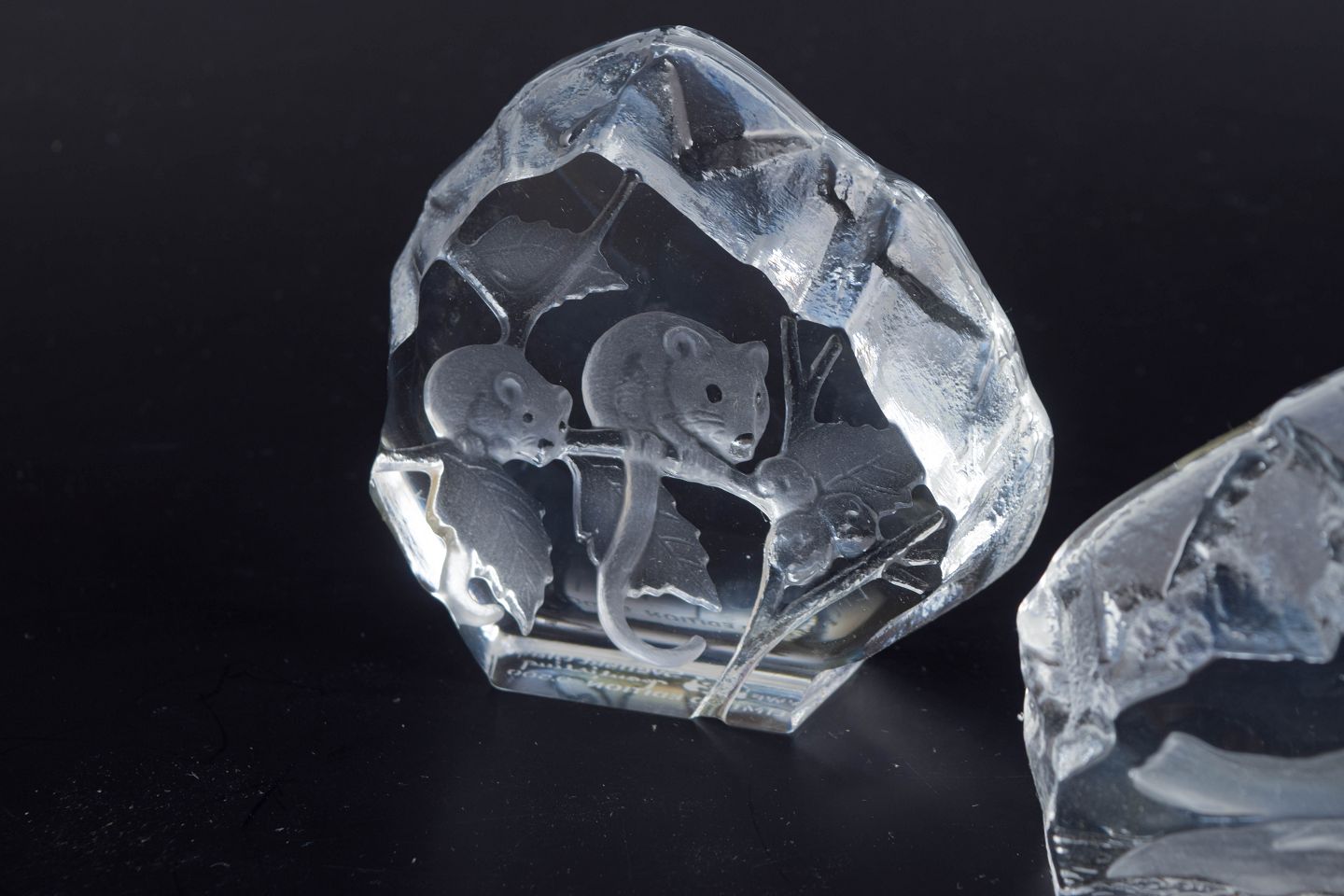 Paul Isling for Svenskt Glas, WWF figures, set of 3.Sculptural art glass sculptures with engraved animal motifs, executed in clear glass and issued as a limited edition in collaboration with WWF.