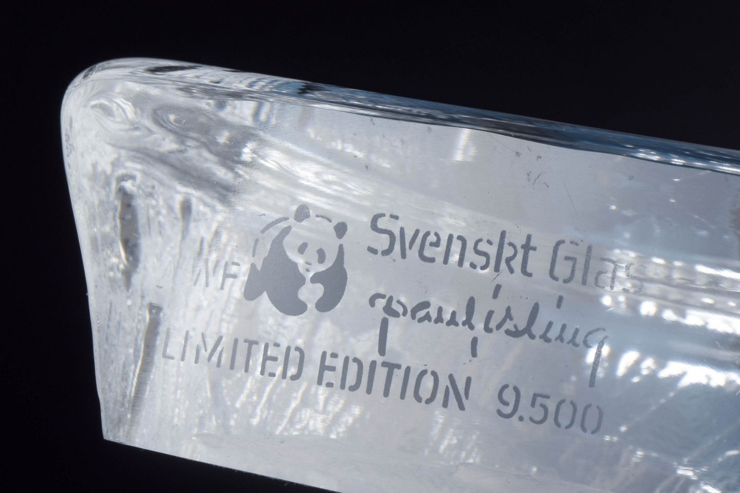 During the 1980s, art glass was frequently used as a communicative medium in collaborations with organisations such as WWF, where nature and animal themes were translated into sculptural forms in clear glass. These editions combine Scandinavian glass art with a strong environmental and conservation message and were typically produced in limited numbers.