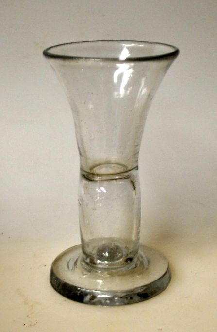 Frimurerglas. 19. årh. Danmark. Klart glas med hul stilk. Dia.: 6,5 cm. H.: 12,0 cm.Emne nummer: 28842