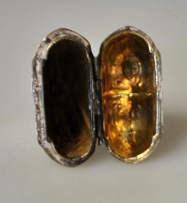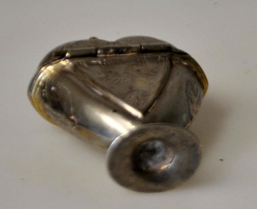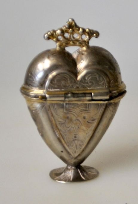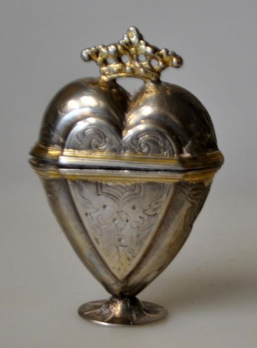 David Reich (1726 - 1782) København, Danmark: Hjerteformet hovedandæg med krone. På standfod. Indvendig lueforgyldt. Stemplet indvendig i låget. Med udvendige graveringer. H.: 65, cm.Emne nummer: 28877