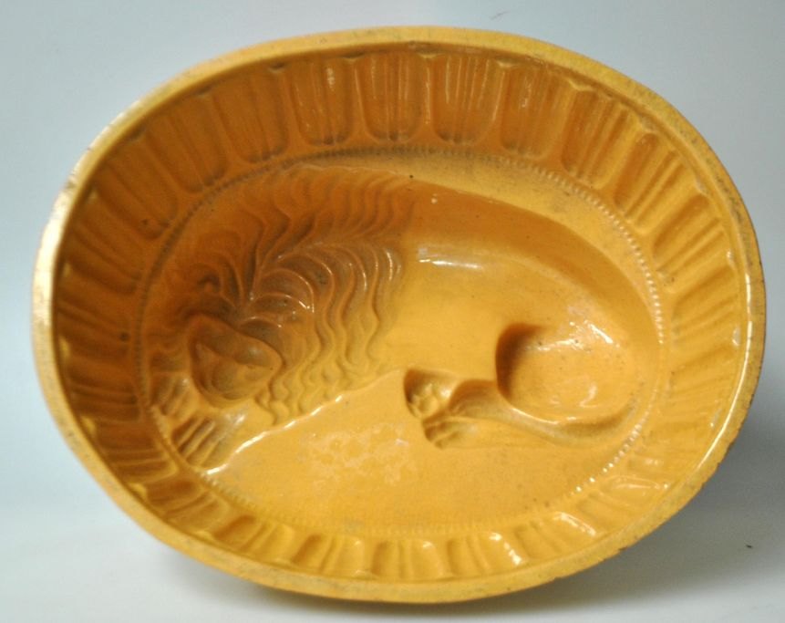 Bornholm pudding mold, 19th century. Denmark. With lion. L.: 26 cm. H.: 14 cm.NB: With small chips on the foot edge.
