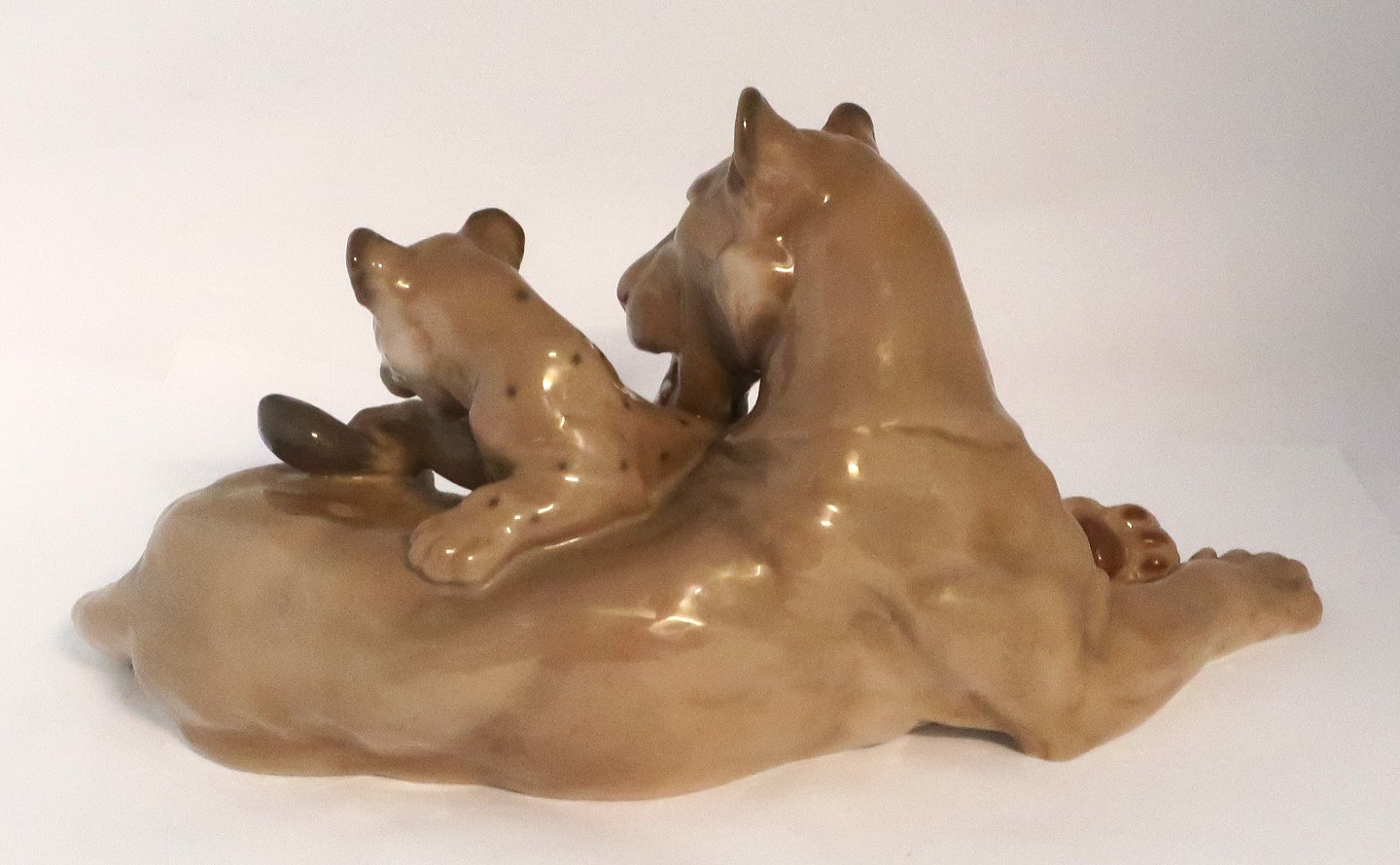 Bing & Grondahl. Lion with lion cub. Model 2268. Length 30 cm. (1 quality) Dealer