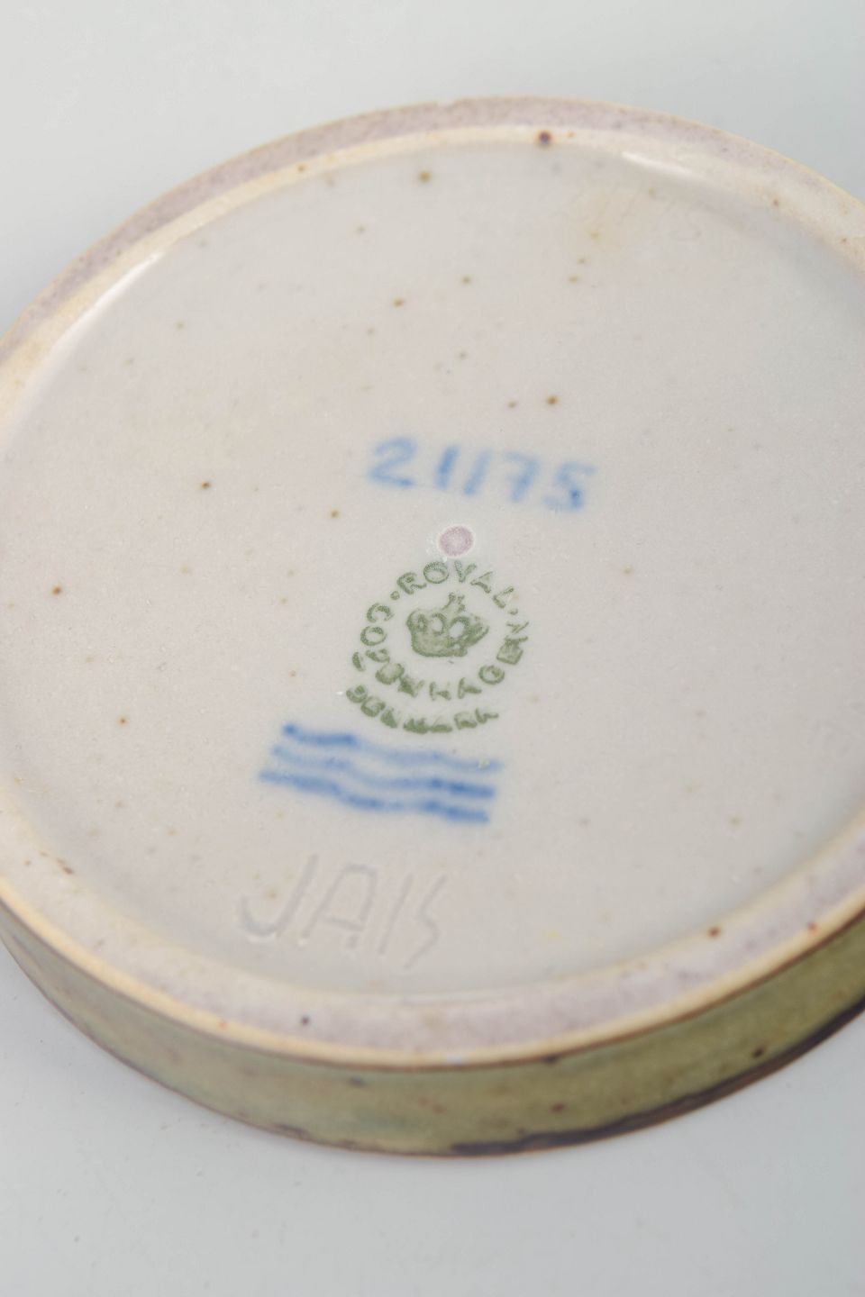 Jais Nielsen for Royal Copenhagen, miniature fad.Reliefdekoreret miniaturefad i glaseret keramik med figurmotiv, model 21175.