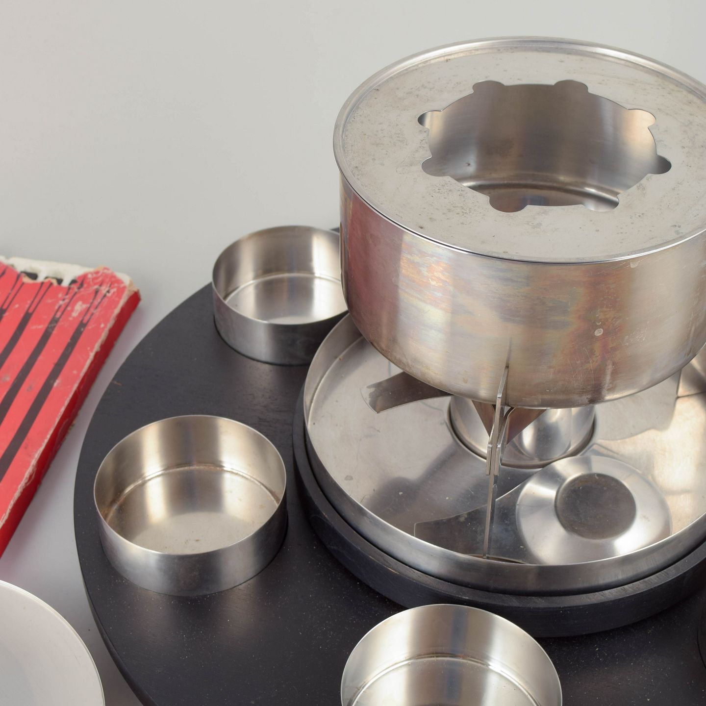 Dansk design fra 1970’erne og 80’erne var præget af en kombination af funktionalitet og et klart geometrisk formsprog. Steltons fonduesæt blev udviklet til moderne borddækning og sociale måltider, hvor materialer som rustfrit stål og træ gav et tidløst og arkitektonisk udtryk, der fortsat er eftertragtet i dag.