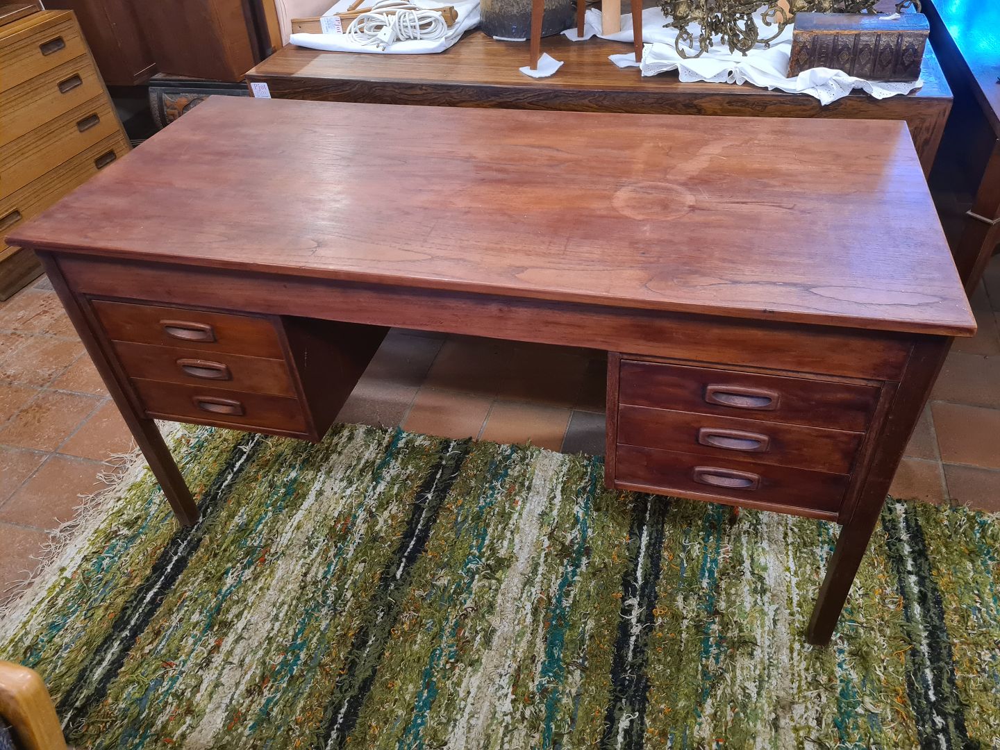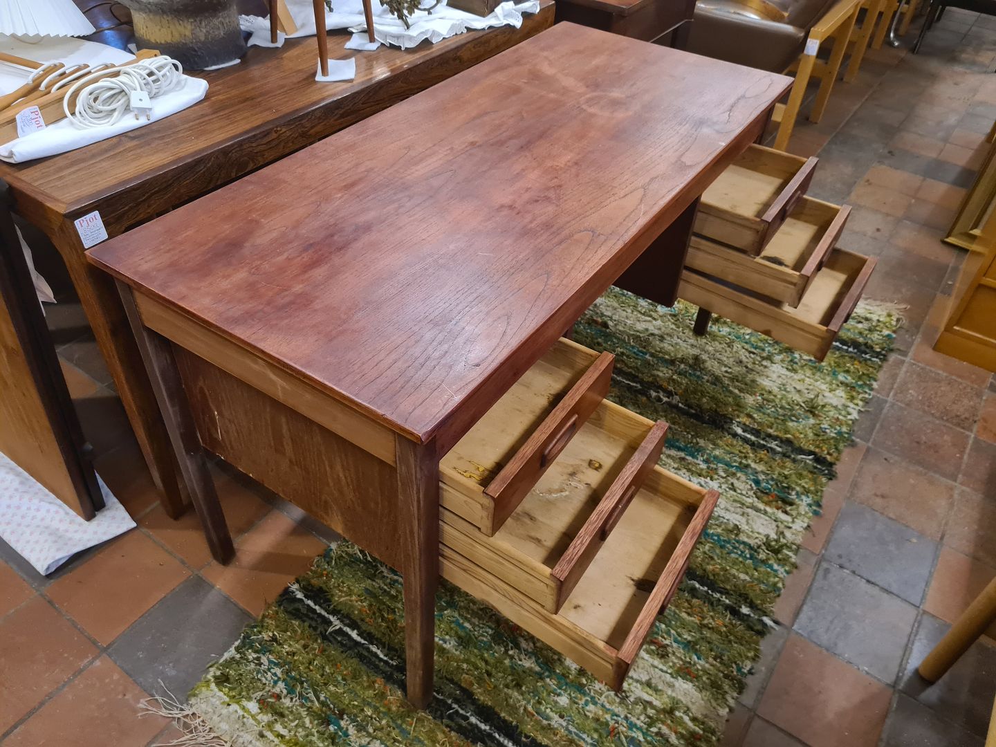 Dansk møbelproducent skrivebord udført i fineret teak. Produceret ca. 1960'erne.Fremstår med brugsspor - se foto.