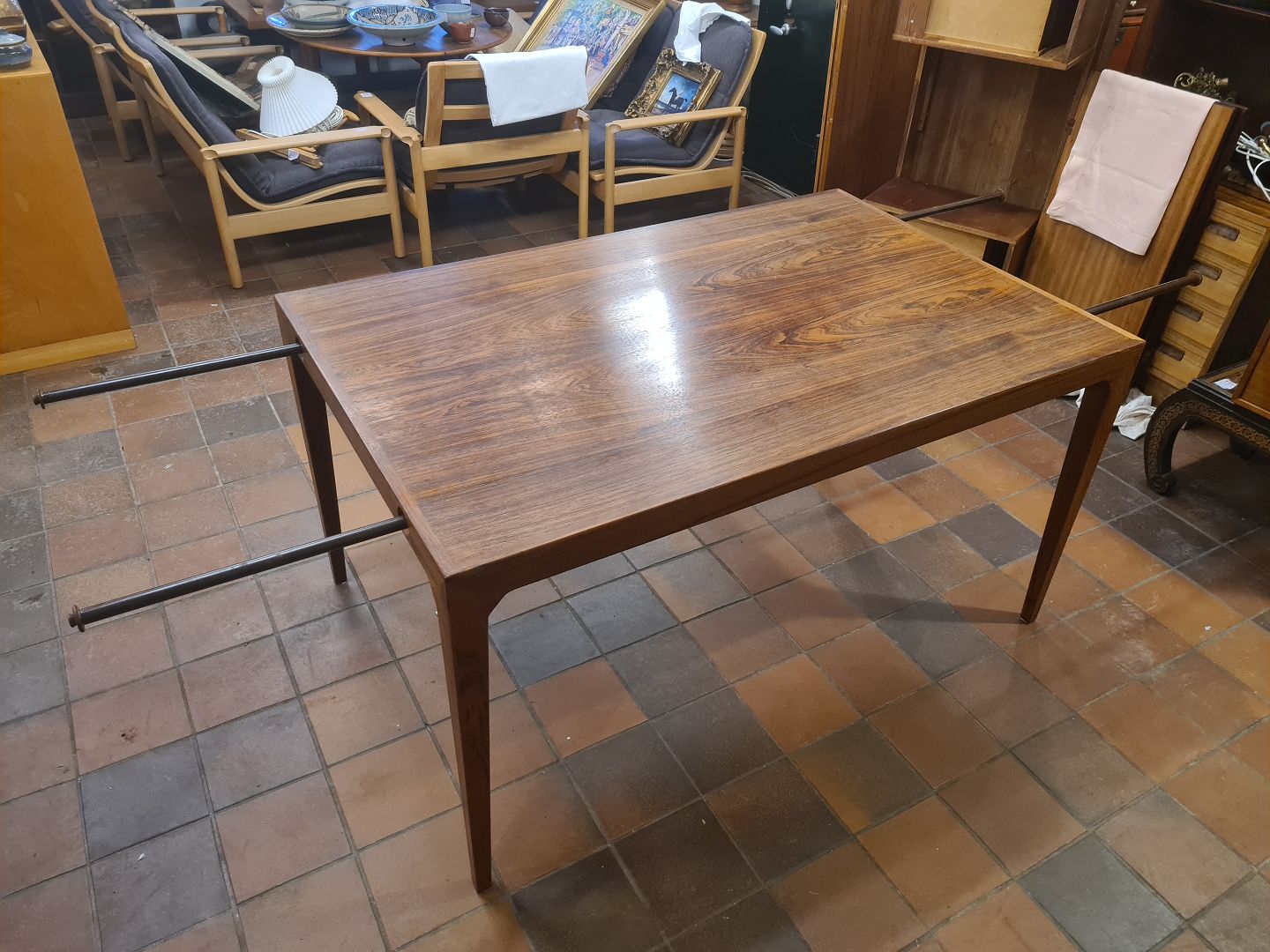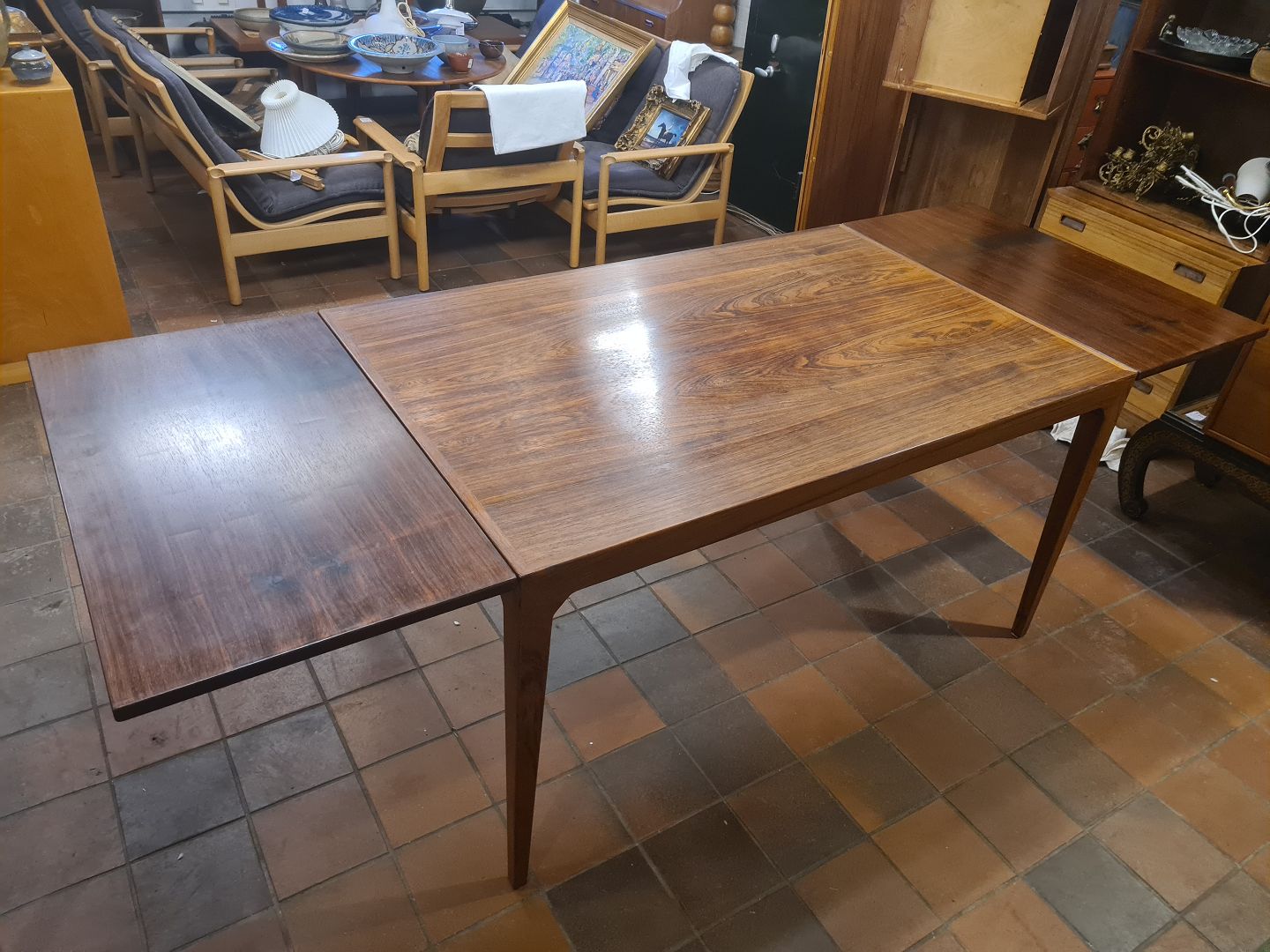 Kai Kristiansen spisebord m. 2 tillægsplader.Udført i fineret palisander ca. 1960'erne.