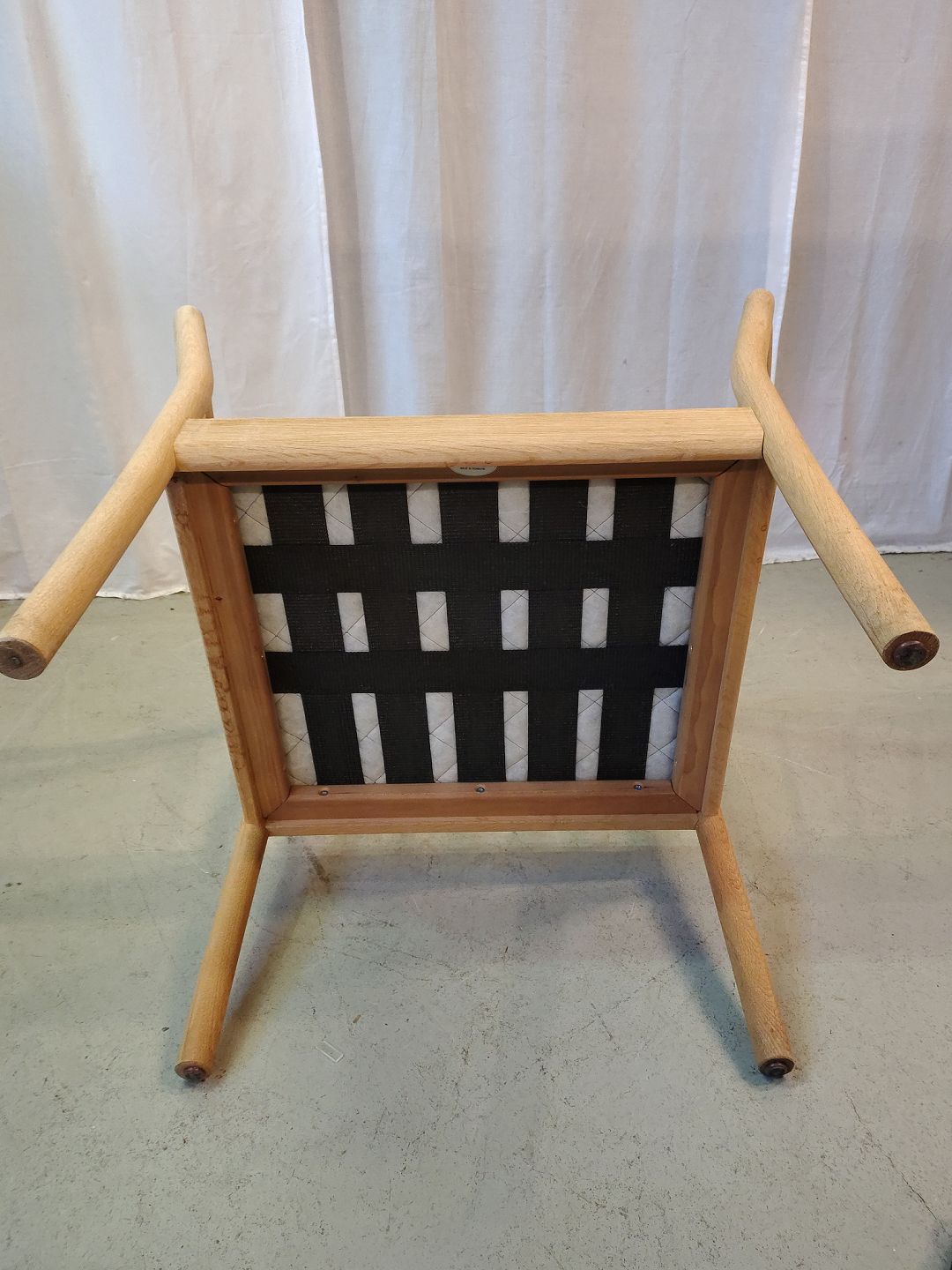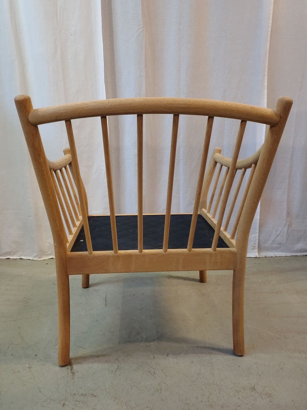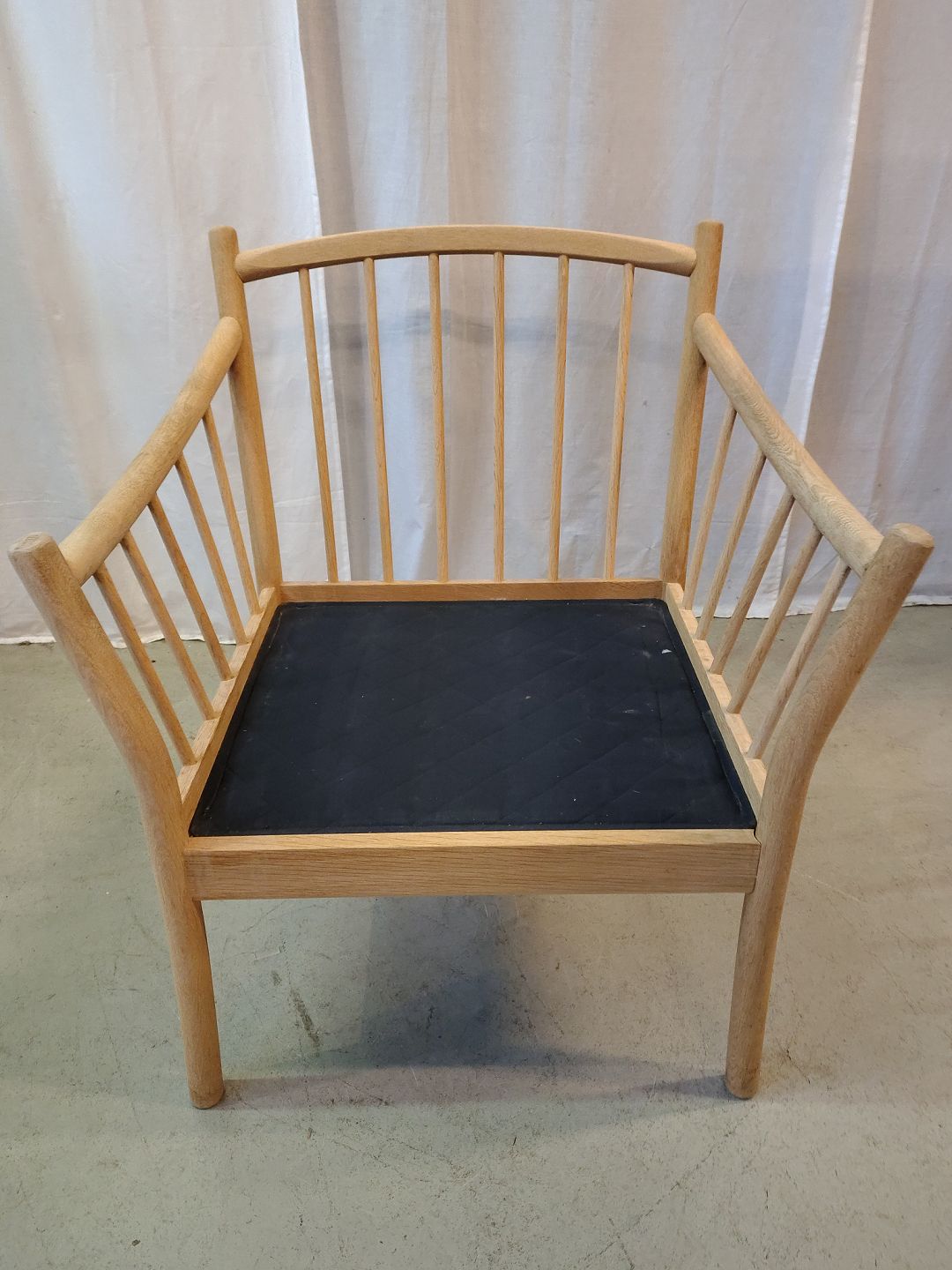 Lænestol i massivt egetræ med kunst rugskind, fra 2000erne.Den har brugsspor.