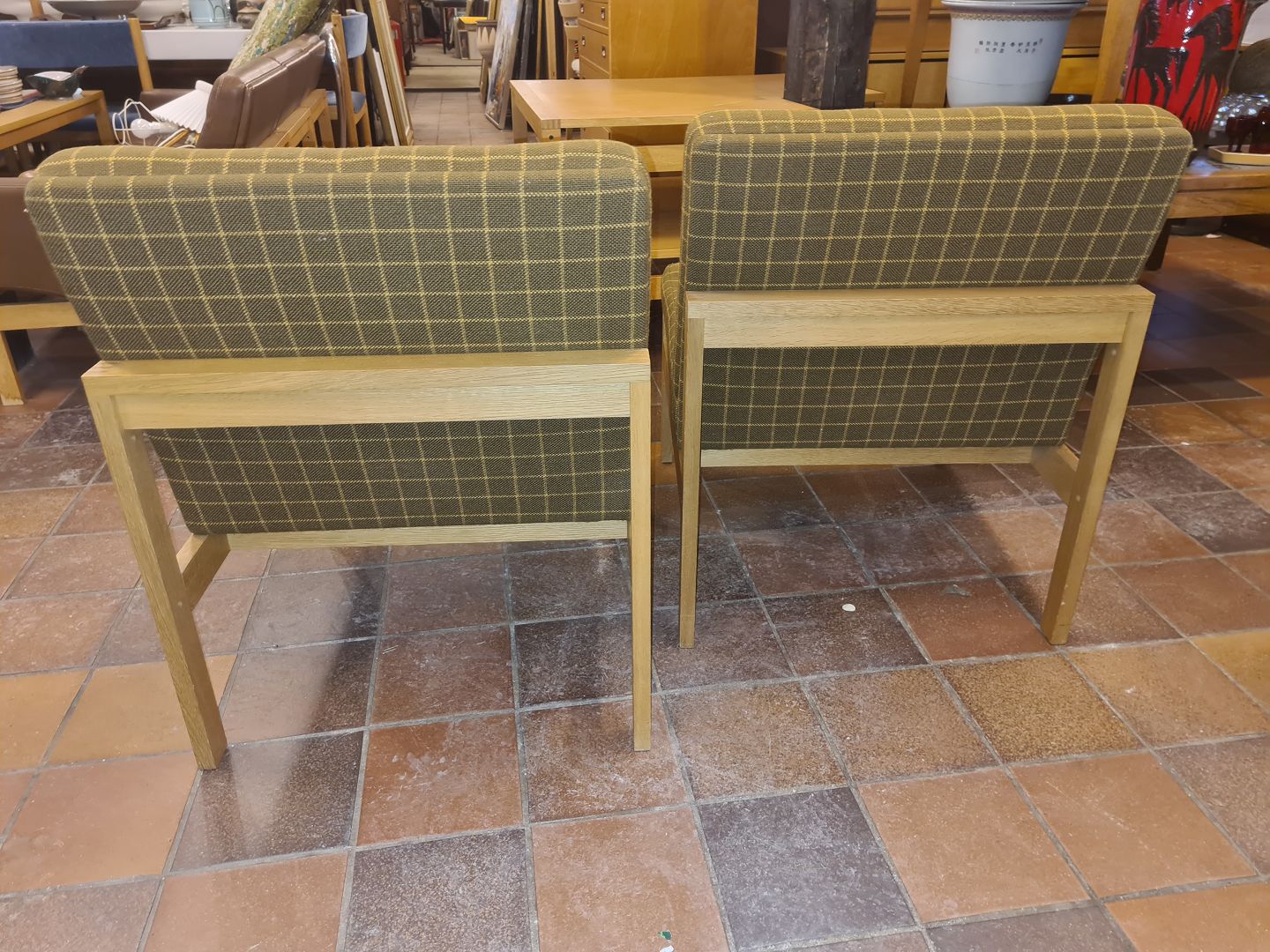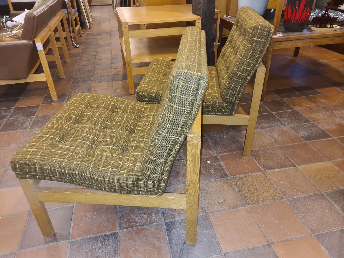 Ole Gjerløv Knudsen/ Torben Lind et par Moduline lounge stole udført i eg og betrukket med dybhæftet uldstof. Fremstillet hos France & Søn ca. 1970'erne.Pæn brugt stand. Sofabord medfølger ikke.