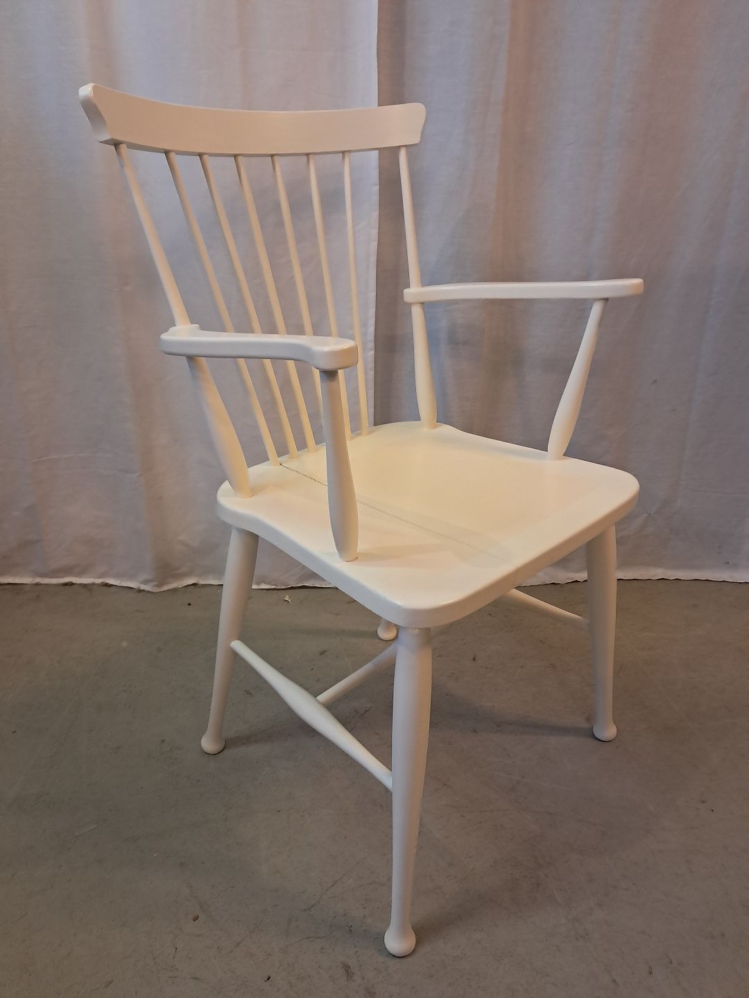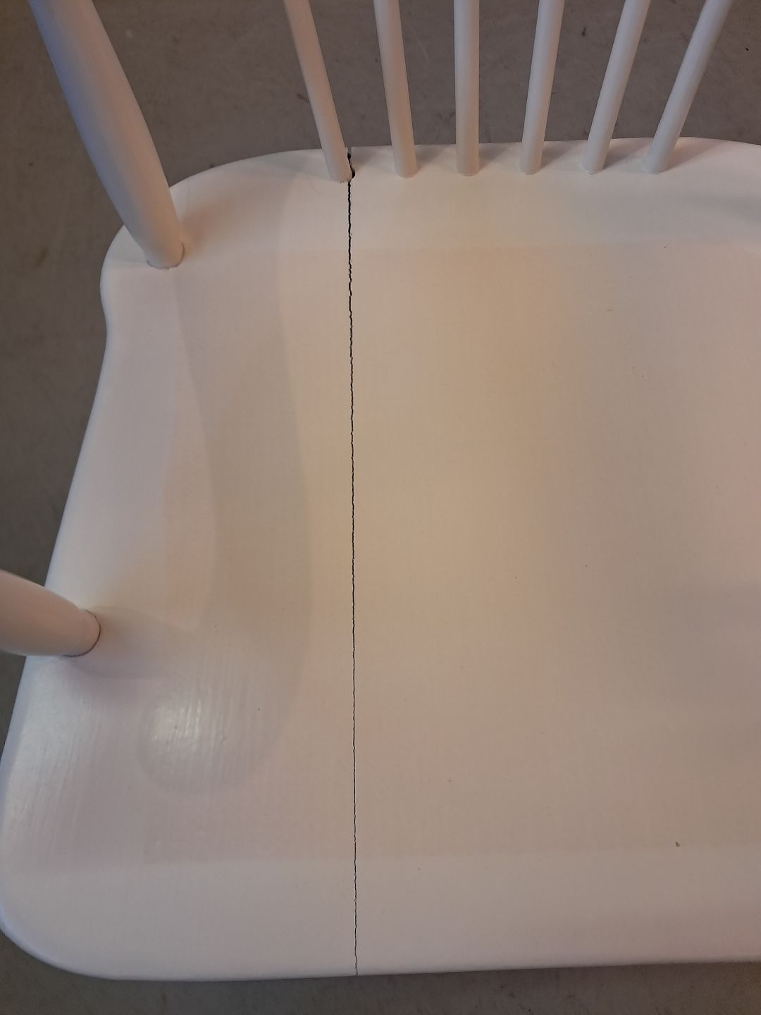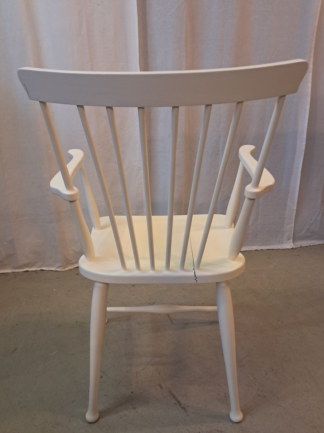 Malet stol i massivt bøgetræ, fra 1960erne.Den er stabil, men har brugsspor og en revne i sædet.
