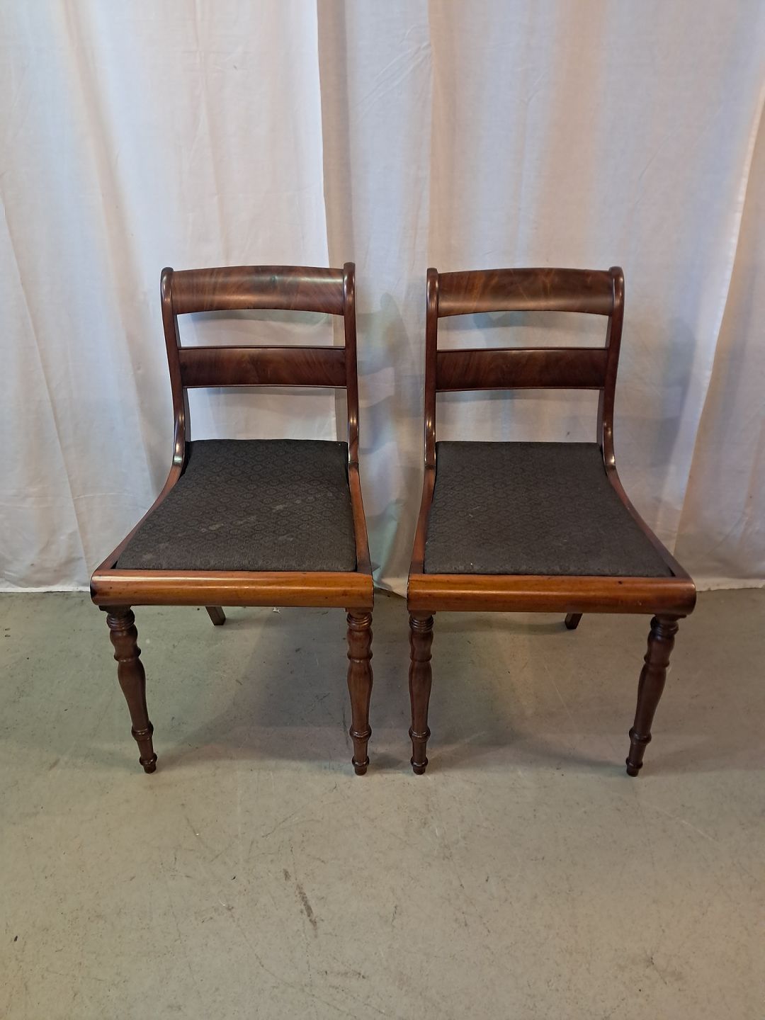 2 Salonstole i massivt mahogni og bøgetræ, fra 1910erne.De har brugsspor.