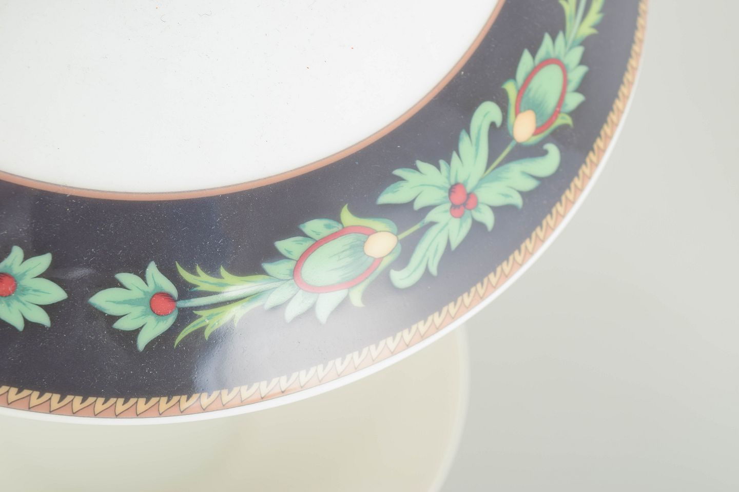 Nina Campbell for Rosenthal, terrin med låg.Terrin med låg i porcelæn fra Rosenthal Classic, dekoreret i serien Mayfair med mørk bort, stiliserede grønne bladranker og gulddetaljer, produceret i 1980’erne.