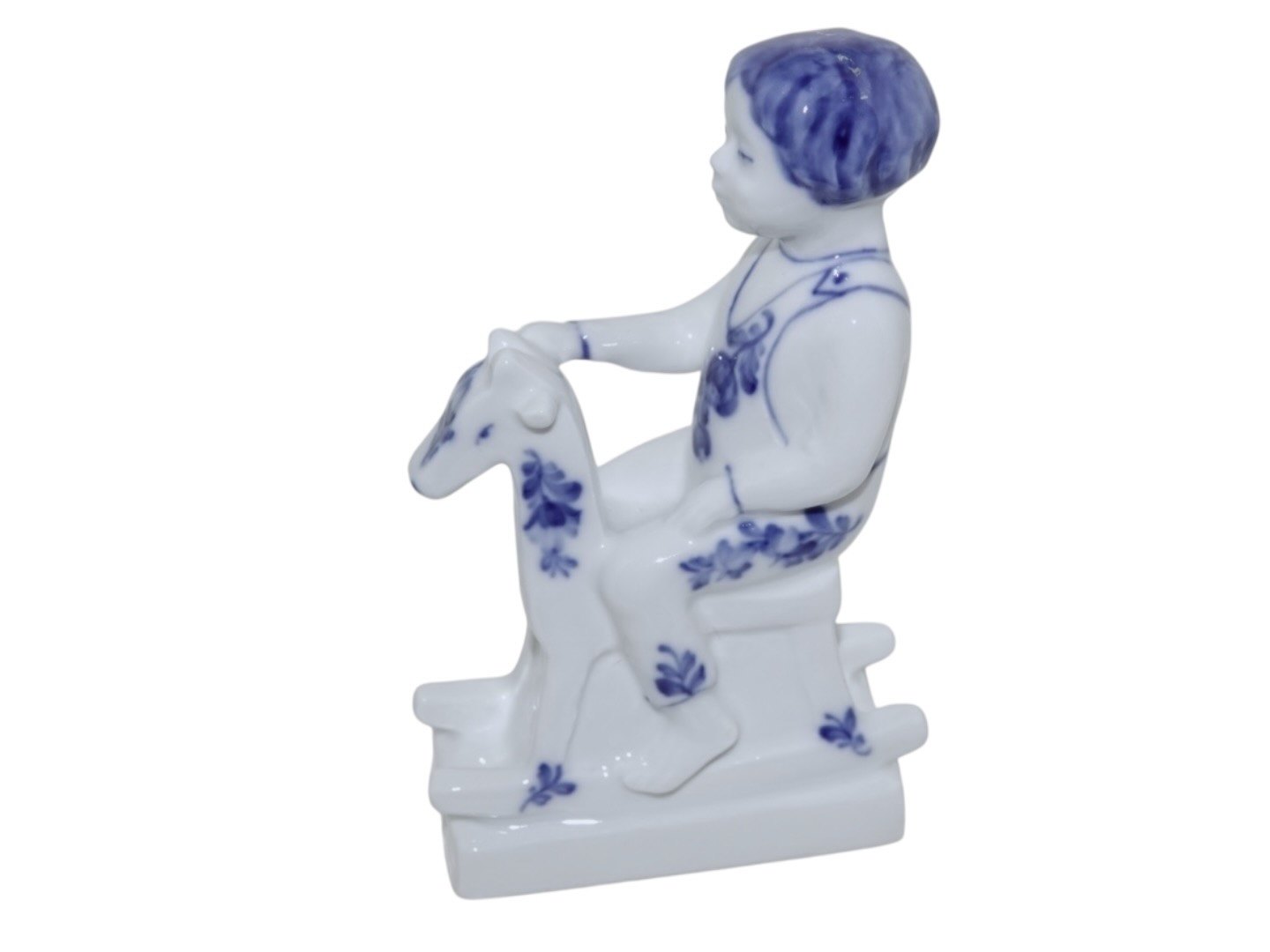 Royal Copenhagen Blå Blomst, sjælden figur af dreng på gyngehest.Dekorationsnummer 10/5196.