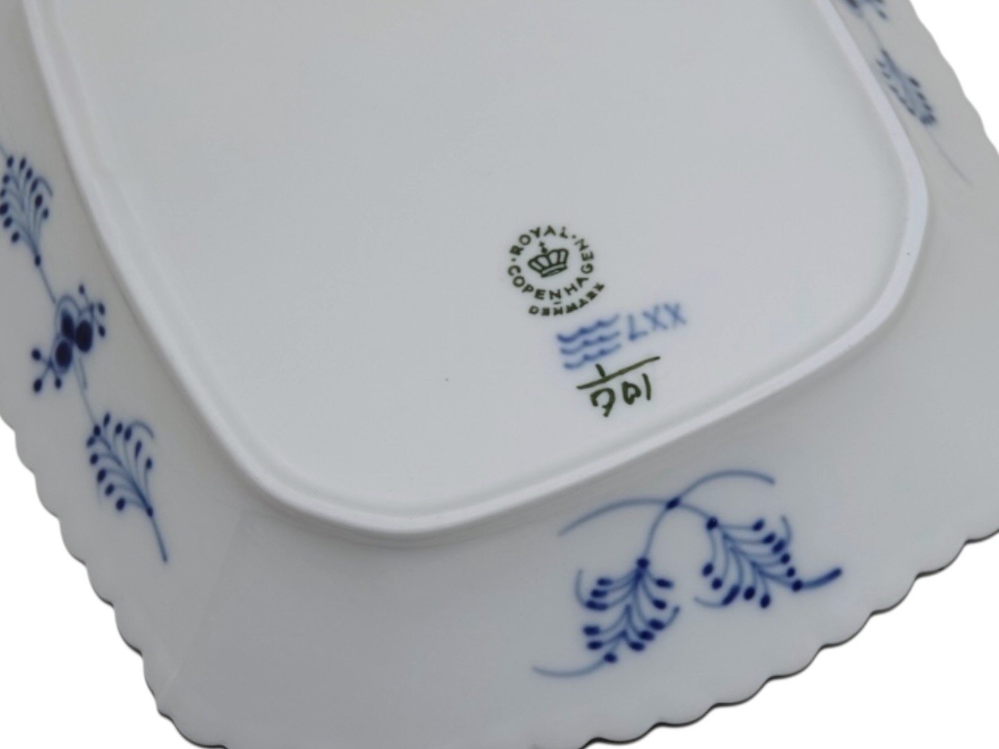Royal Copenhagen Musselmalet Halvblonde, sjælden set lille brødbakke.Fabriksmærket viser, at denne er produceret i 1966.