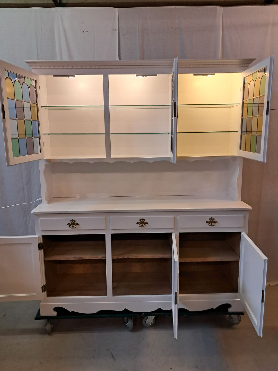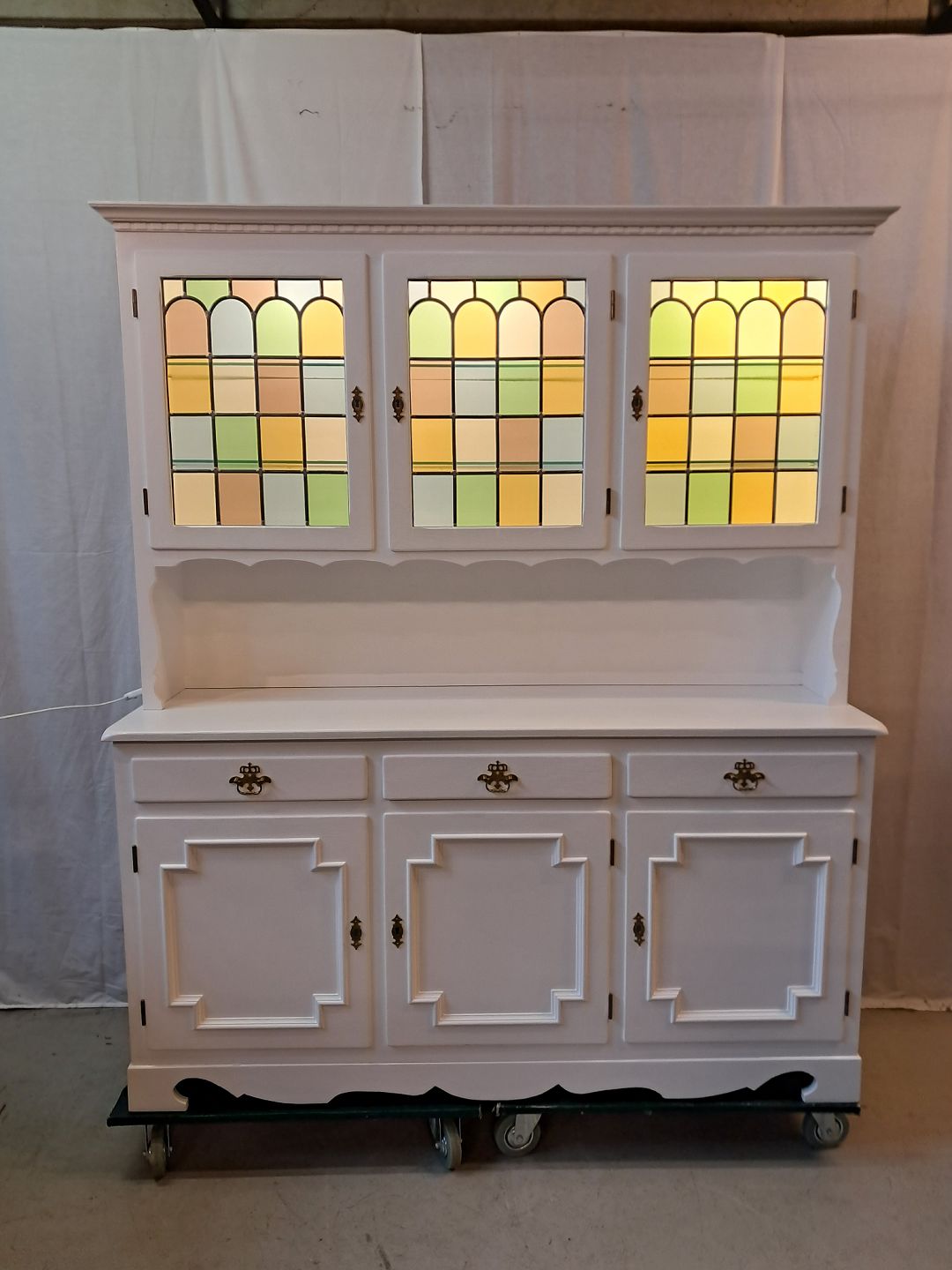Malet skab med vitrineoverdel, fra 1980erne.Det har brugsspor.