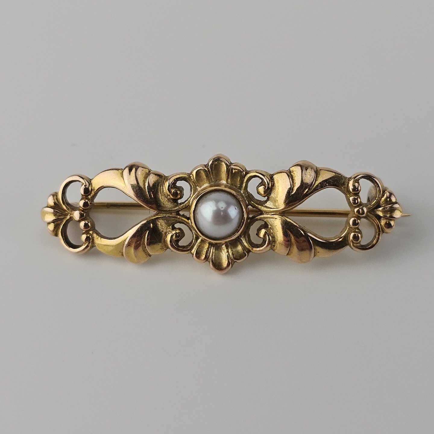 Broche i 14 karat guld dekoreret med en perleNr. 249