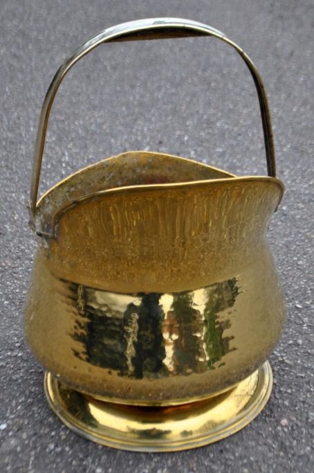 Messing kul spand, 19. årh., England. H. inkl. hank: 41 cm. Dia: 26 cm.Emne nummer: 28984