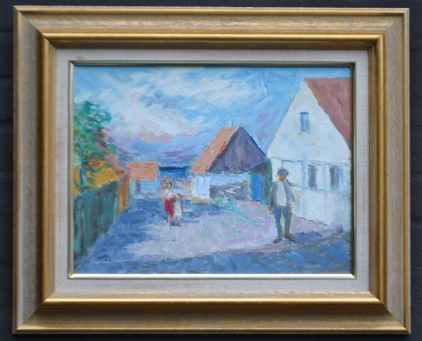 Nielsen, Svend (1908 - 1993) Danmark: Motiv fra Bornholm. Akryl på lærred. Signeret: Svend Nielsen. H: 30 cm. B: 40 cm.Indrammet: H: 47 cm. B: 57 cm.
