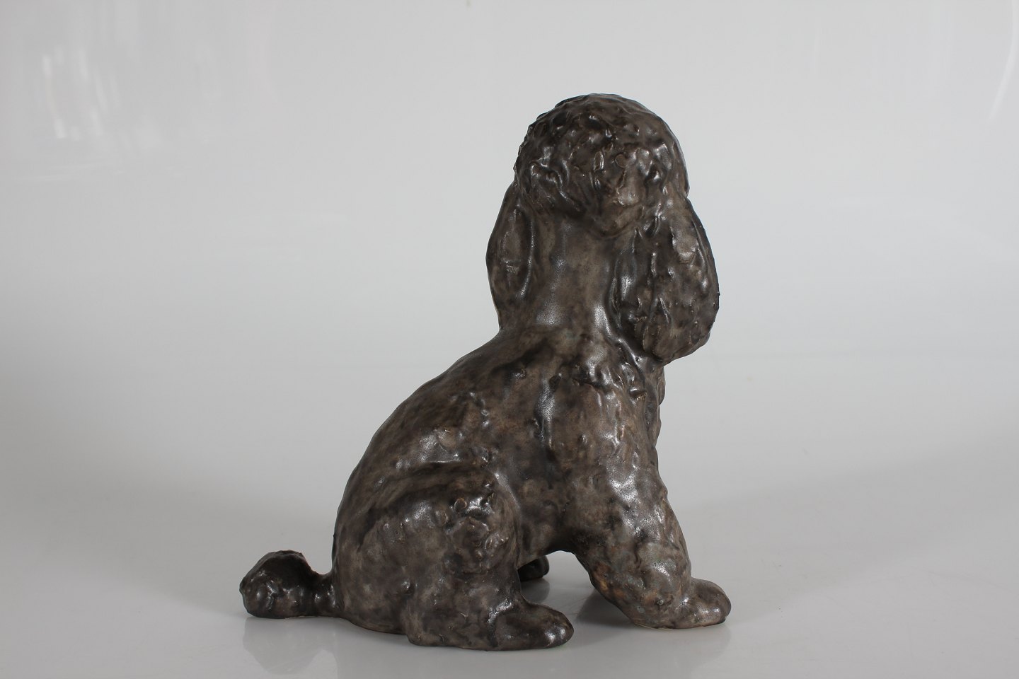 Elise Glaffey (1936-)Livagtig puddelhund af keramik dekoreret