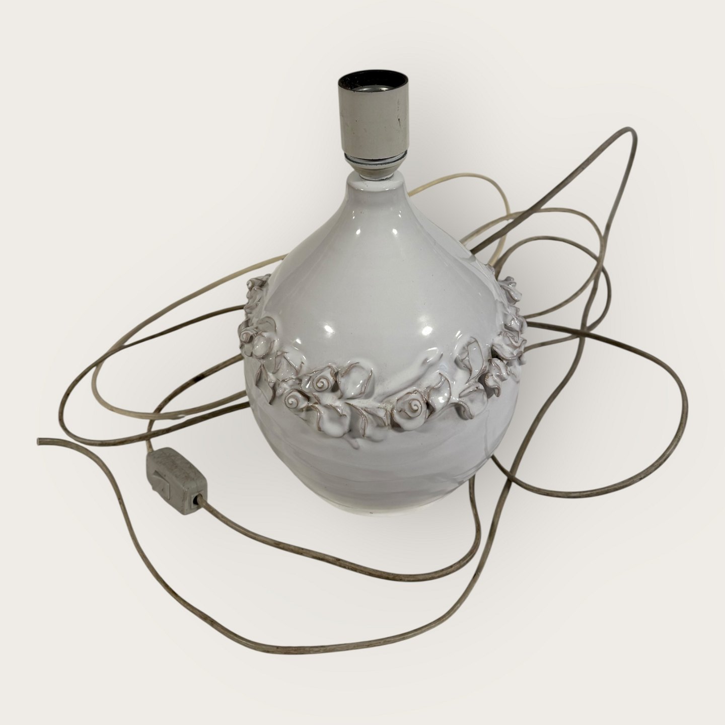Torben Keramik, Stor hvid bordlampe med blomsterranke, højde med fatning 27,5cm, signeret Torben Danmark 175 *Fin stand*Lager: 1