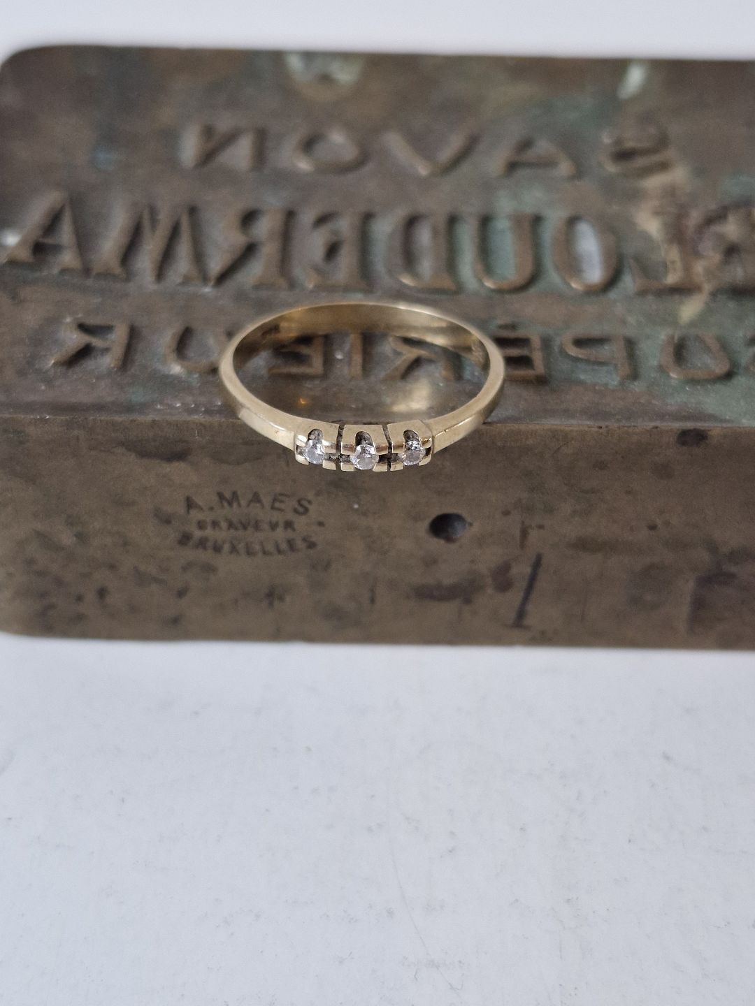 Vintage alliancering i 14 kt guld med 3 små brillanterStemplet: 585 - Bo.G