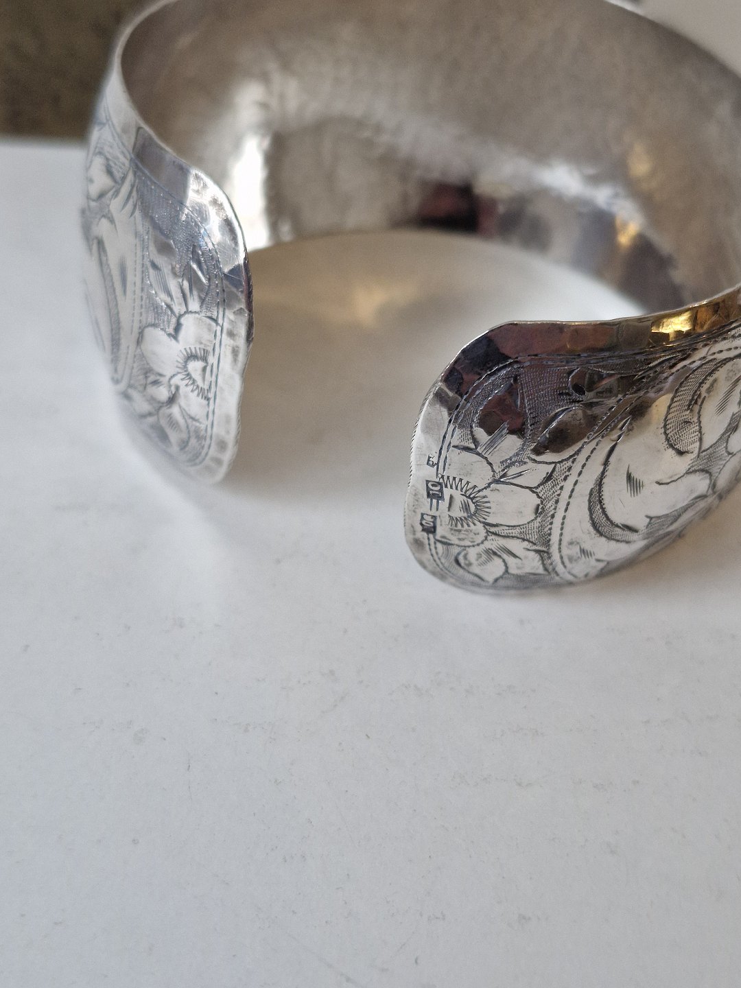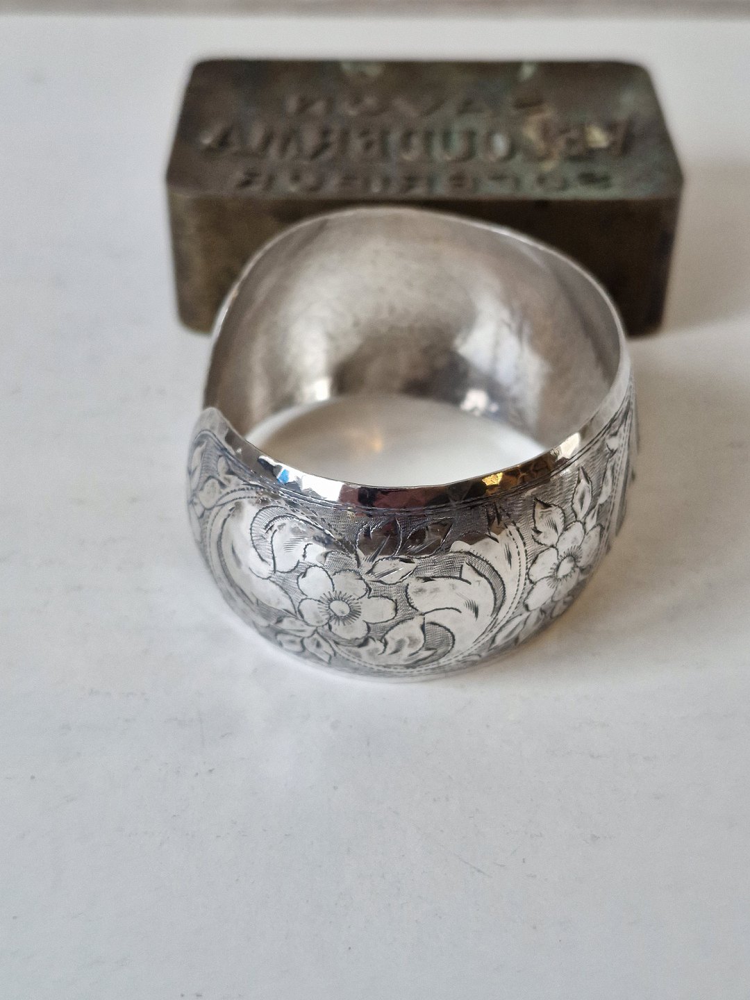 Vintage armring i sølv, smukt ciseleret blomster motivStemplet: OD - 900