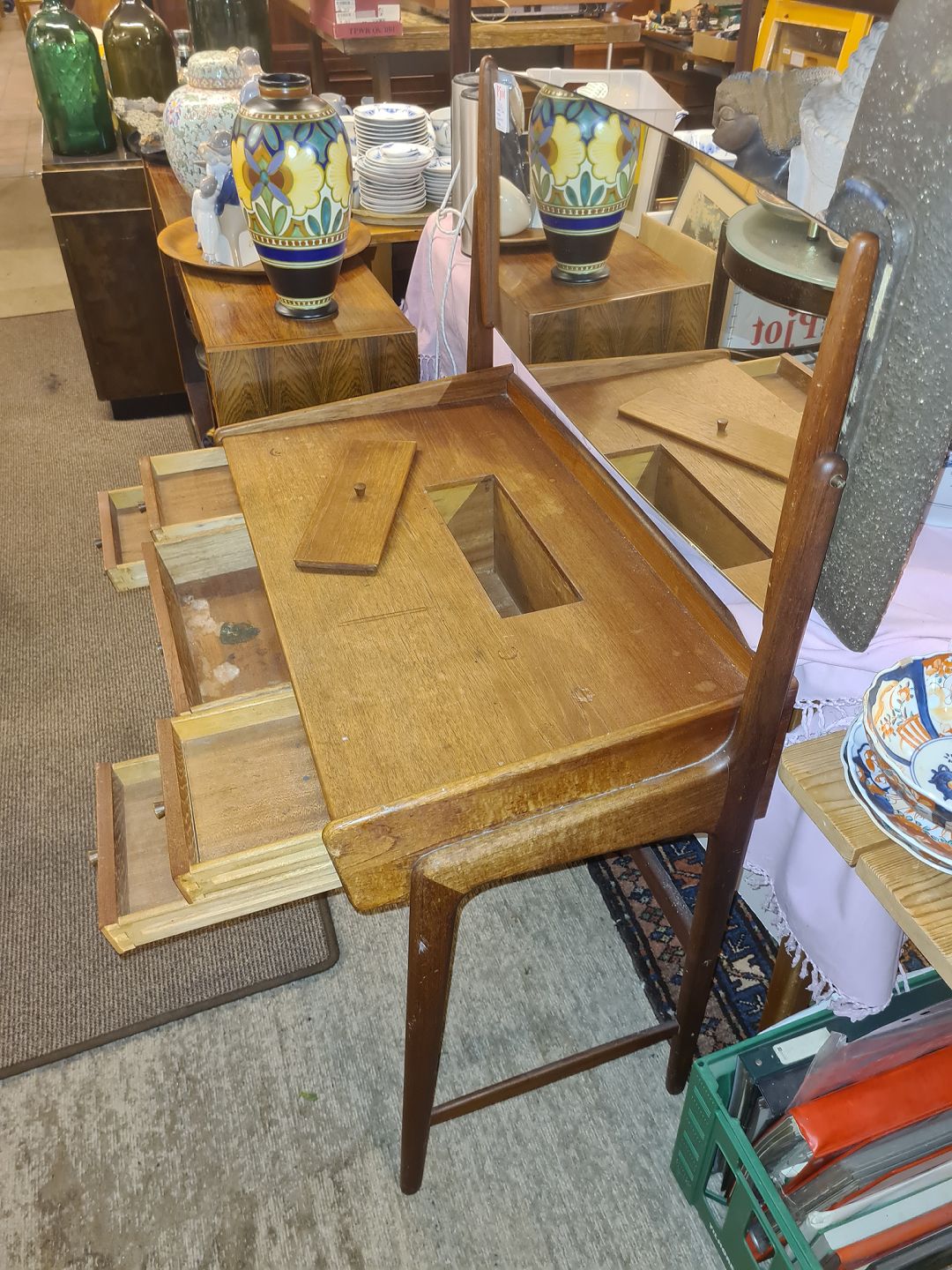 Svend Aage Madsen sminkebord i teak m. spejl med vippe funktion.Fremstillet ca. 1950'erne.