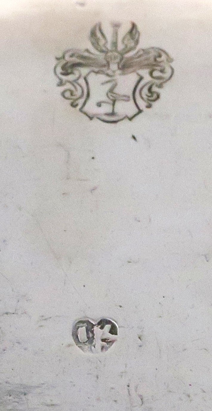 Jens Kjeldsen Sommerfeldt, Aalborg 1726 - 1767. Lille oval bakke. Længde 20 cm. Bredde 15,5 cm.
