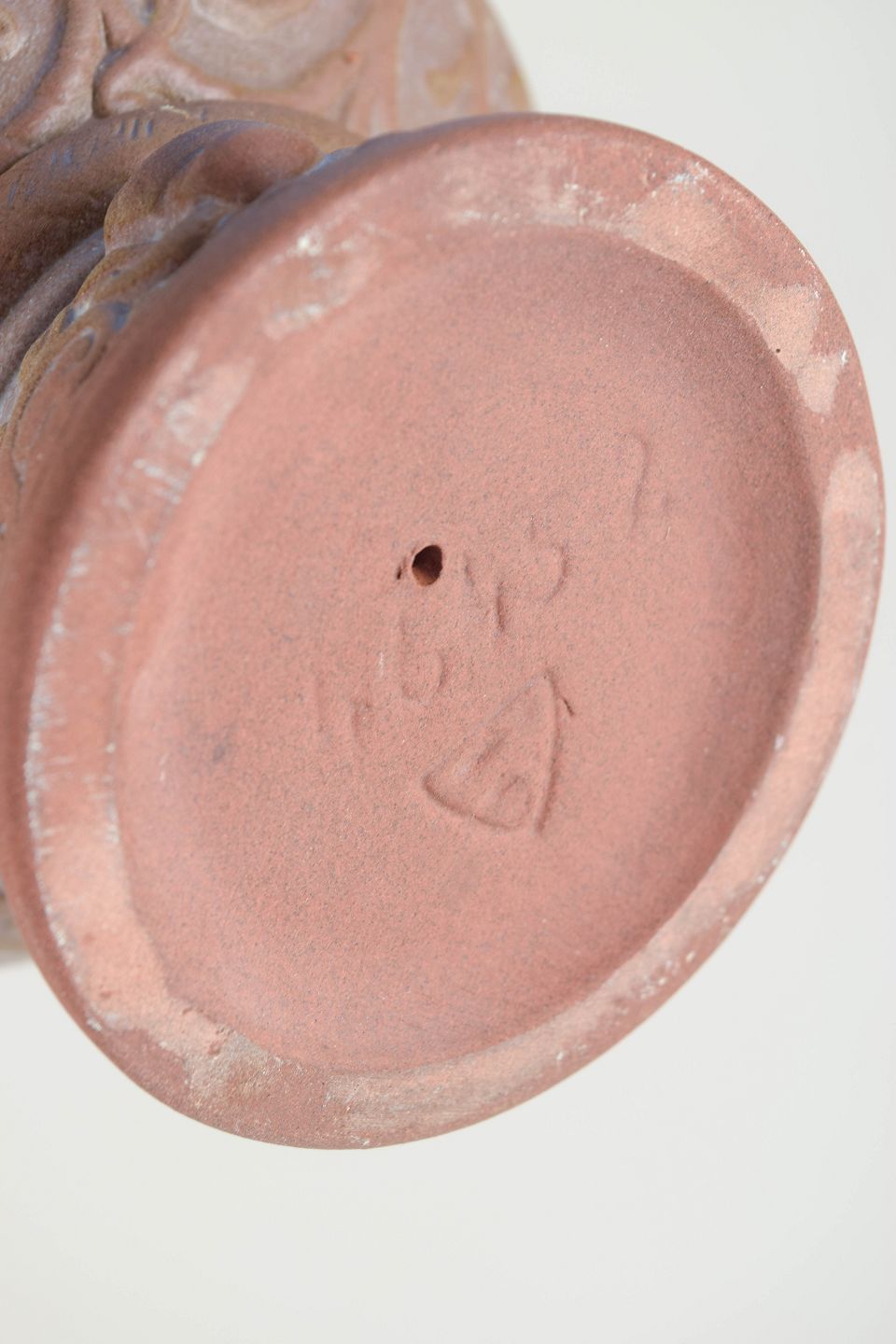Michael Andersen & Søn, døbefont, model 4645.Reliefdekoreret stentøjsdøbefont med figural bort og profileret fod. Glaseret i varme rosa og brunlige nuancer. Udført med fabrikkens karakteristiske mærke.