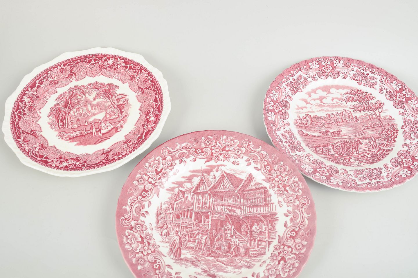 Engelsk fajanceproduktion i mellemkrigstiden var præget af en stærk tradition for transferware-dekoration, især i Staffordshire-området. Fabrikker som Mason’s, Royal Warwick og beslægtede producenter fremstillede servicevarer med detaljerede landskabs- og historiske motiver. Disse tallerkener var tiltænkt daglig brug, men er i dag eftertragtede for deres dekorative kvalitet og tydelige tidsudtryk.