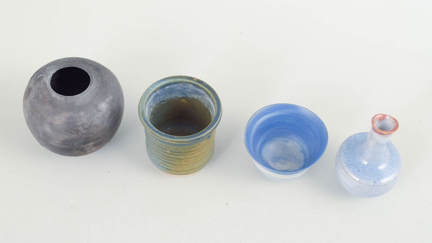Unikke miniature vaser og skåle, europæiske studiokeramikere.Samling af hånddrejede miniature vaser og små skåle i stentøj med individuelle former og varierede glasurer. Hvert stykke fremstår som et unika med tydeligt præg af det enkelte værksted.