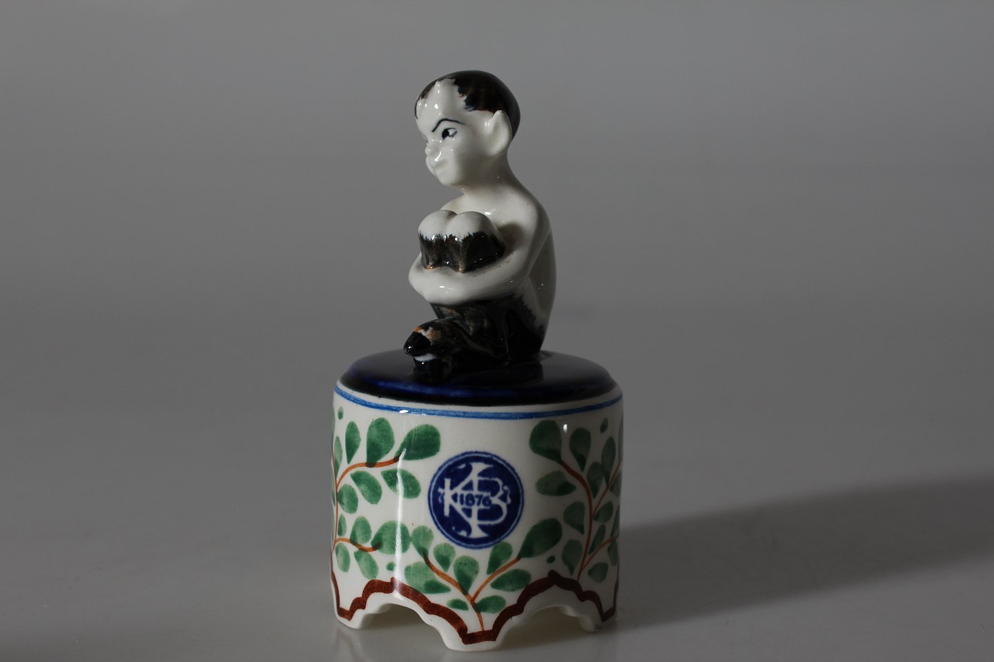 Aluminia FajanceLille figur af Faun model nr. 917/786 på rund opsats