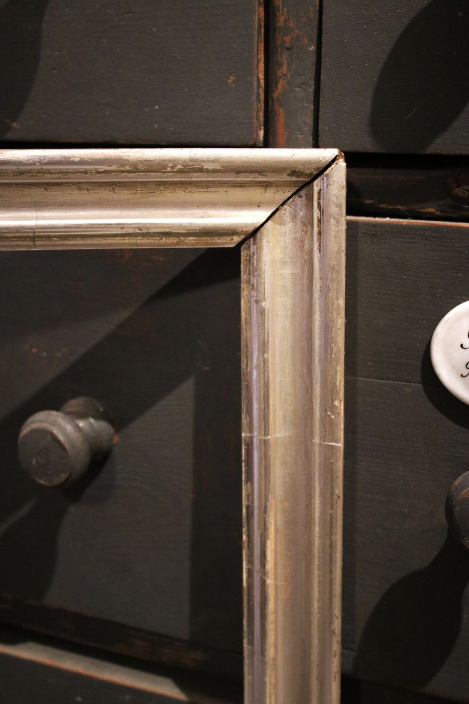 Antik 1800 tals træ ramme med original gammelsølvbelægning og fin patina.