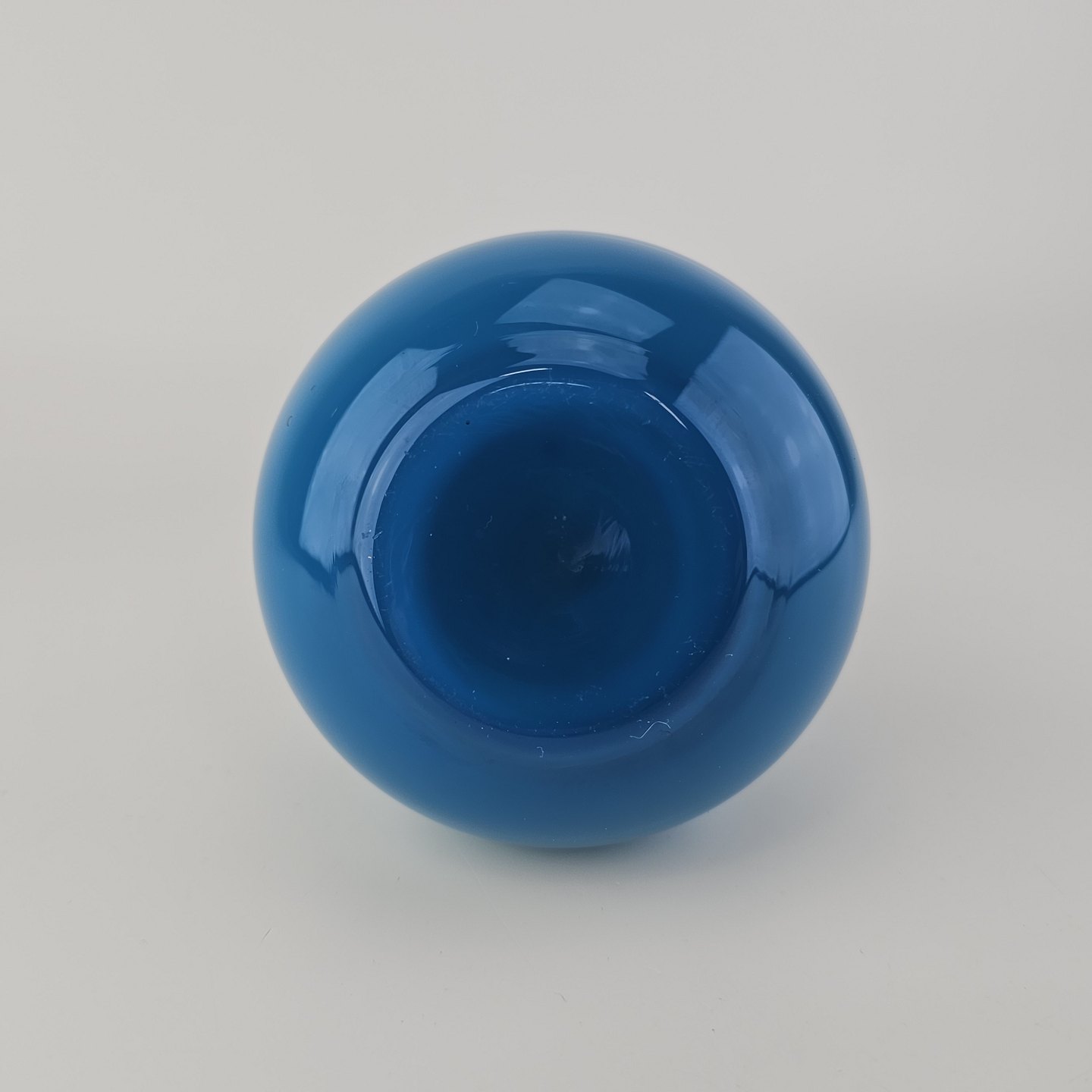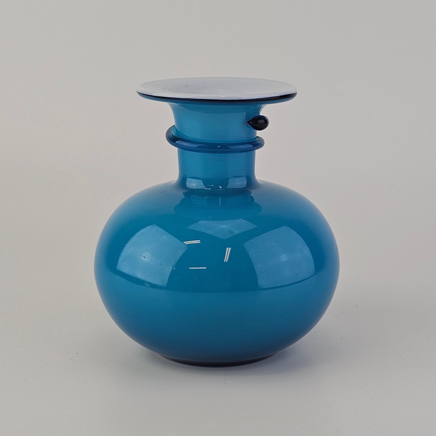 Rund Napoli glasvase i blåt opalglas med hvid indersideDesign Michael Bang