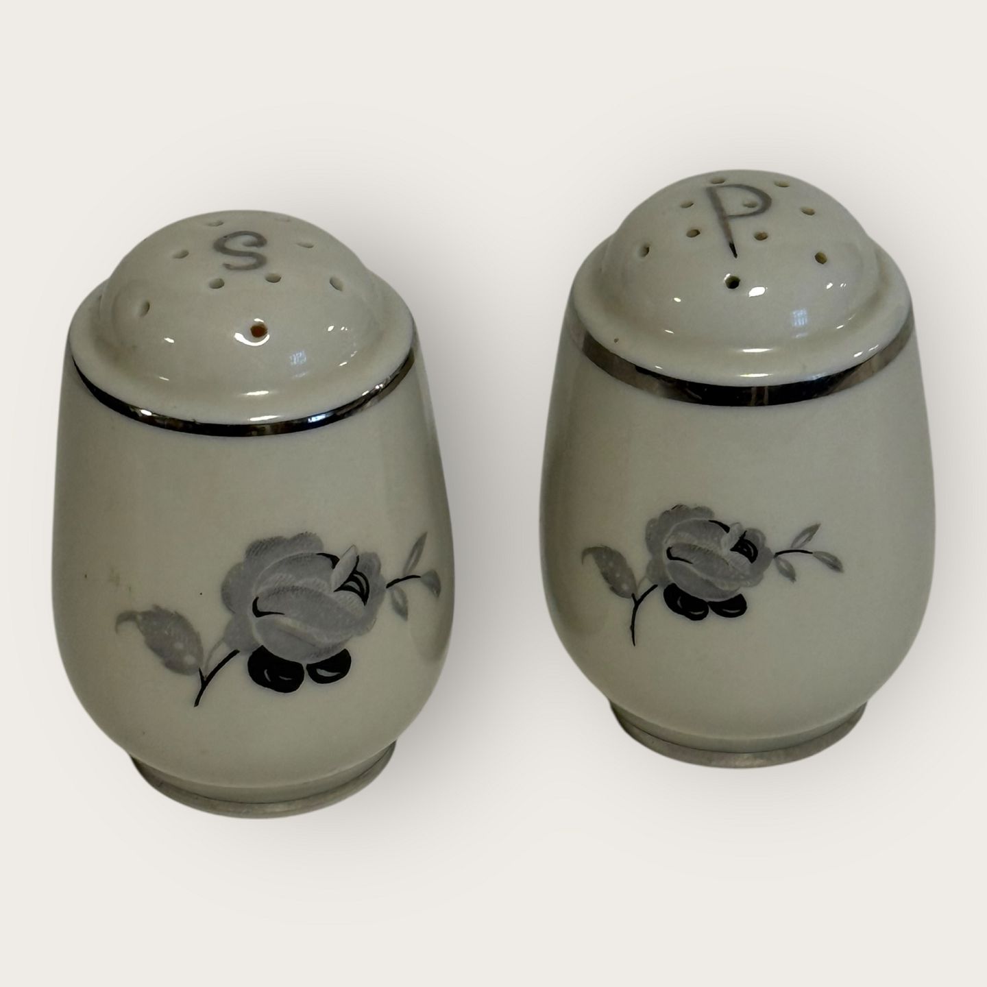 Sort rose, med Plantin kant, KPM, Lyngby, Salt og peber sæt, højde 5,5cm *Pæn stand*Lager: 1