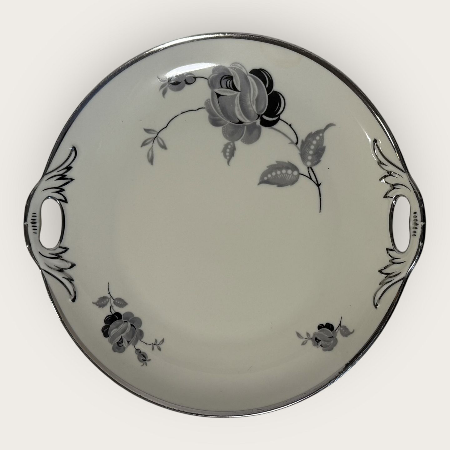 Sort rose, med Plantin kant, KPM, Lyngby, Kage fad med hanke, Mål: 24,5x25,5cm *Pæn stand*Lager: 1