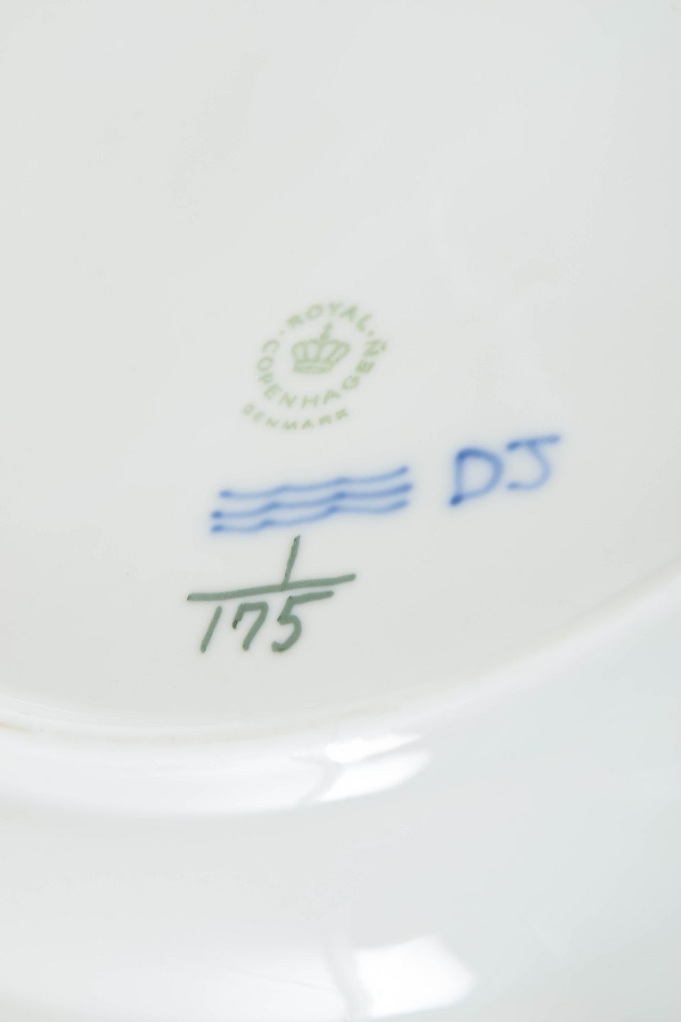 Royal Copenhagen blev grundlagt i 1775 og er Danmarks mest anerkendte porcelænsfabrik. Musselmalet riflet er fabrikkens ældste stel og har været i kontinuerlig produktion siden slutningen af 1700-tallet. Stellet er kendetegnet ved den riflede form og den præcist håndmalede blå dekoration, udført efter faste traditionelle mønstre, hvilket gør hver genstand til et klassisk eksempel på dansk porcelænshåndværk.