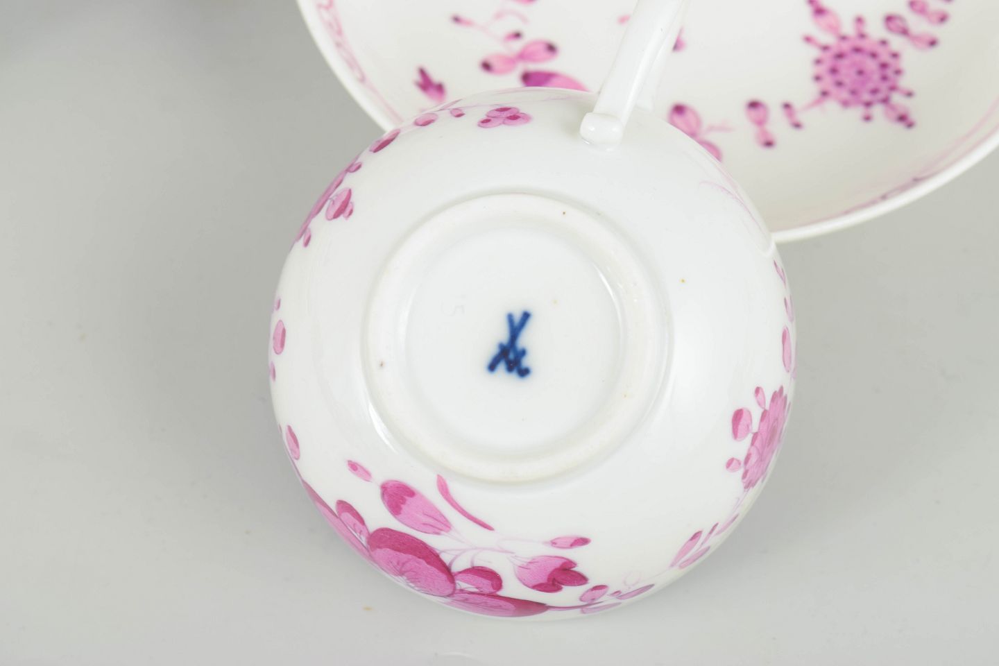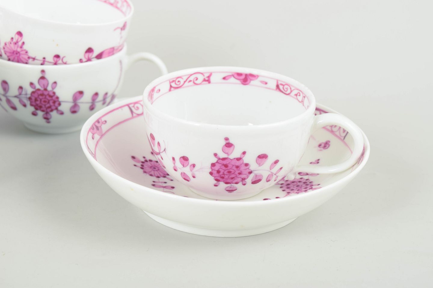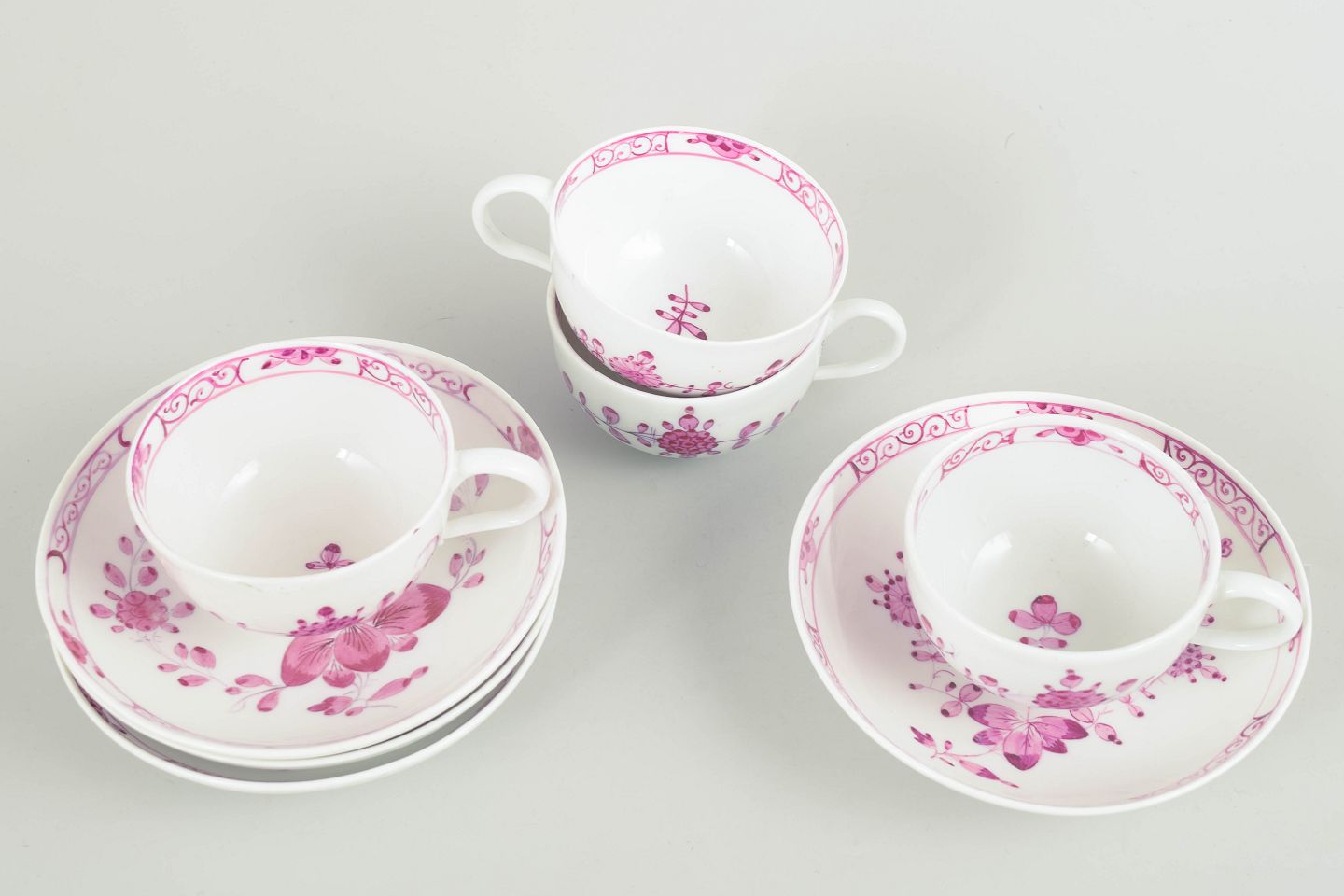 Meissen, sæt på 4 små kaffekopper med tilhørende underkopper.Antikke små kaffekopper i porcelæn med håndmalet dekoration i rosa toner. Klassisk Meissen-udtryk med fine blomster- og båndmotiver.