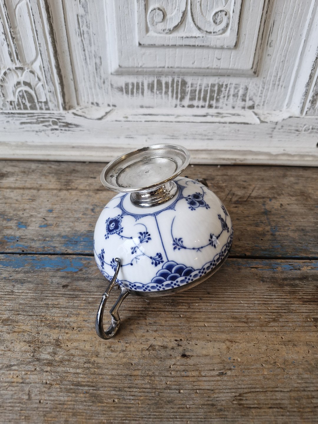 Royal Copenhagen Blue Fluted half lace sugar bowl with silver plated mounting.